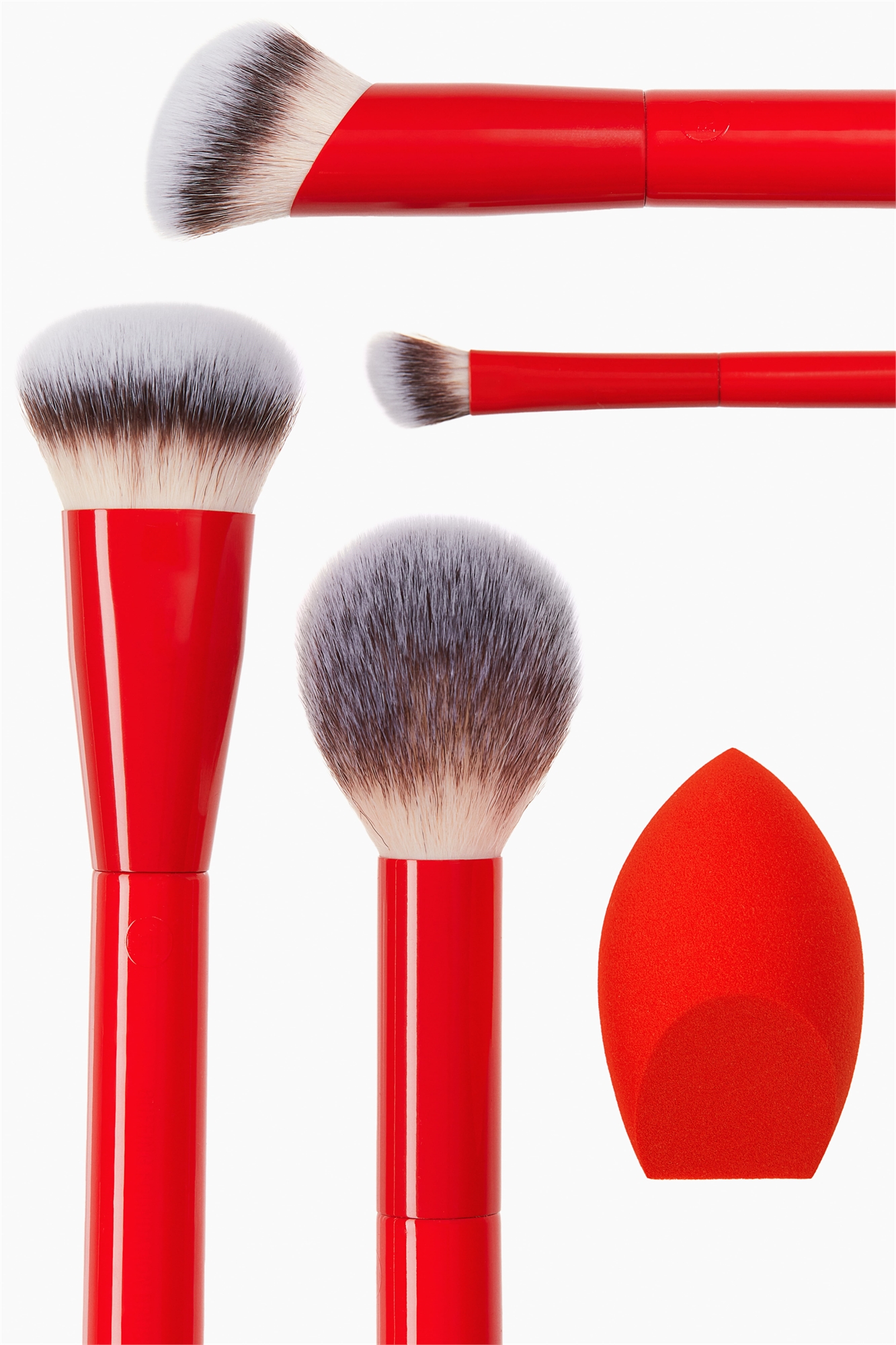 Набор из четырех кистей и спонжа для макияжа лица и глаз, охватывающий широкий спектр техник. Синтетическая щетина.