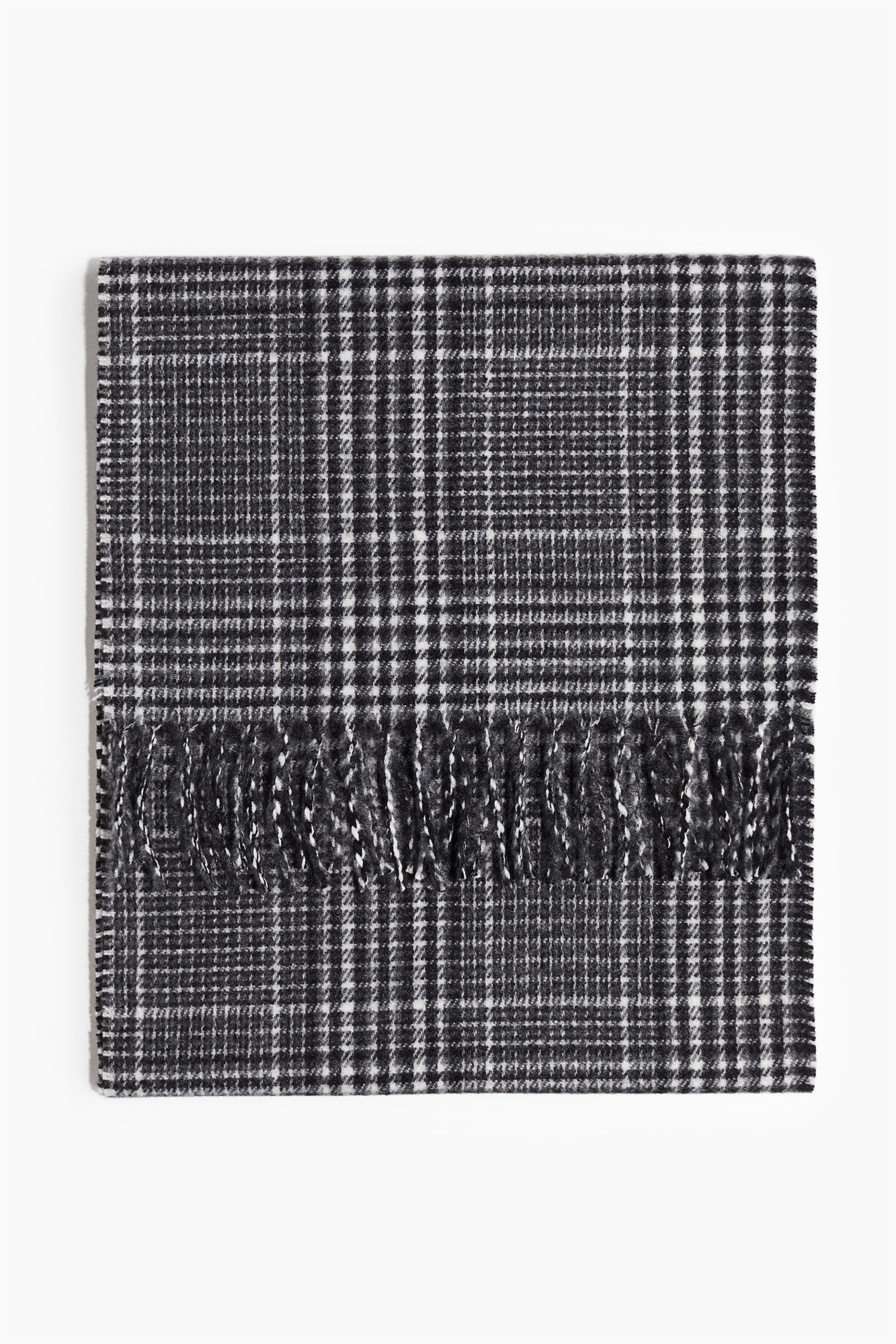 Шарф из мягкого тонкого трикотажа с бахромой по коротким сторонам.