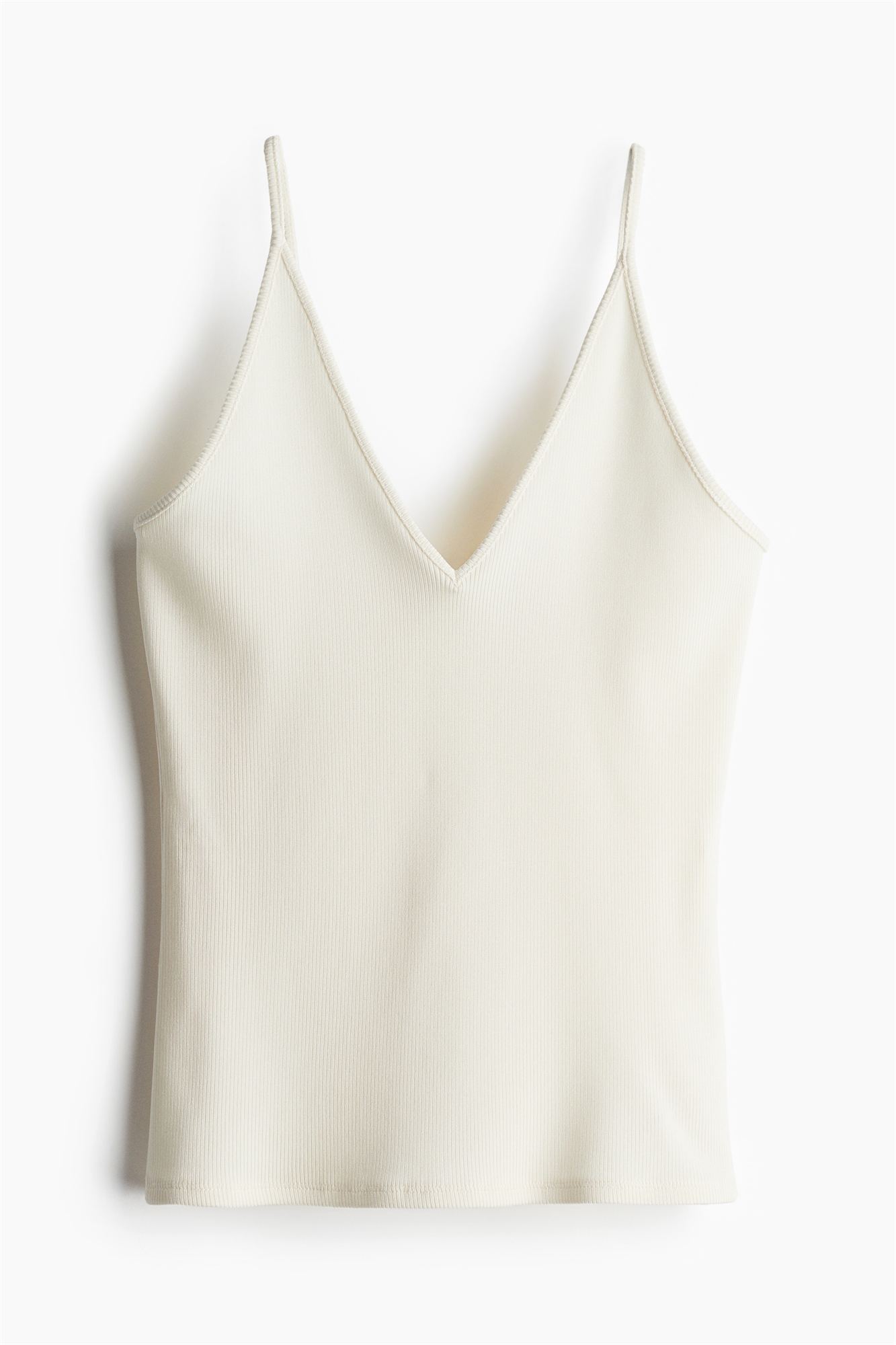 Облегающий топ из плотного трикотажа в рубчик с глубоким V-образным вырезом и узкими бретелями.