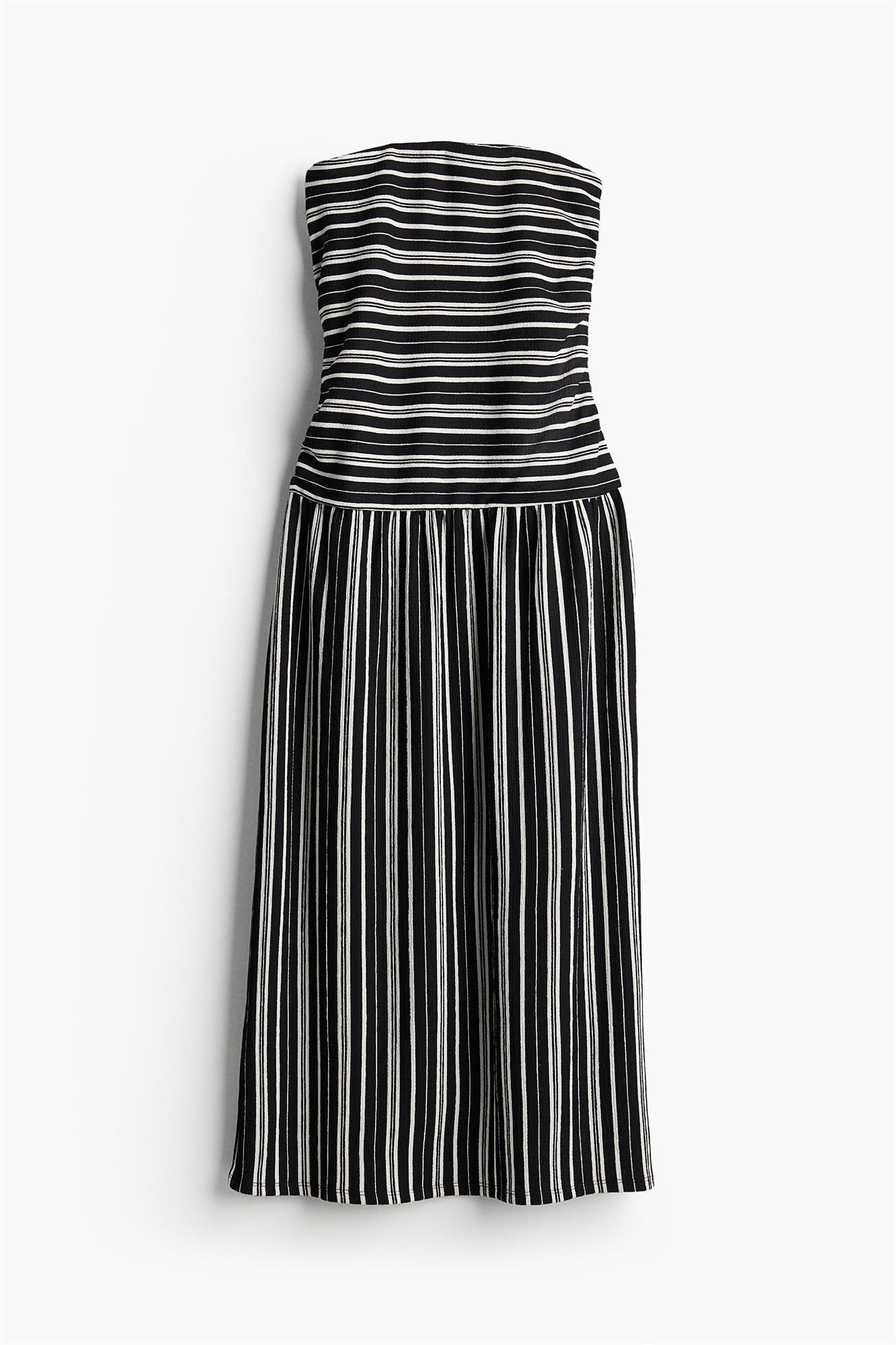 Платье-бандо длиной до щиколоток из фактурного джерси с приталенным лифом, сборкой по шву на бедрах и расклешенной юбкой.