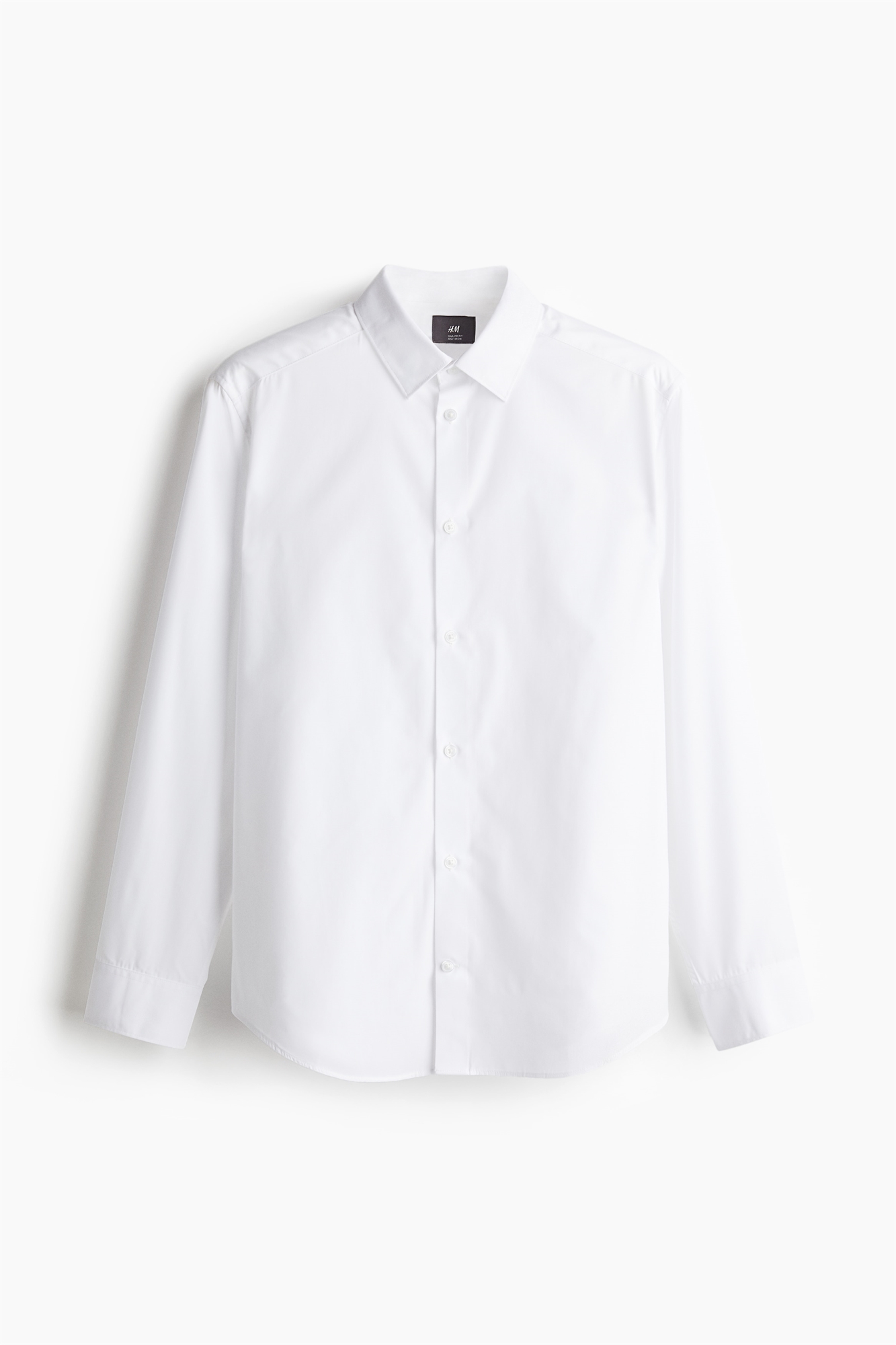 Рубашка из тканого материала с легкой глажкой. Отложной воротник, французский воротник спереди, передняя панель и закругленный подол. Длинные рукава с регулируемыми пуговицами на манжетах и рукавной планкой с пуговицей. Регулярный крой для комфортной носки и классического силуэта.
