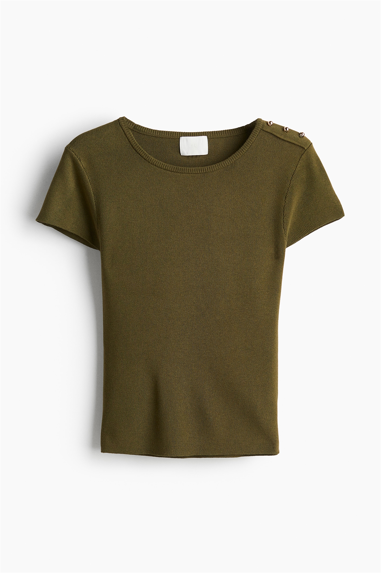 Короткая приталенная футболка из мягкого тонкого трикотажа с круглым вырезом с ребристой отделкой.