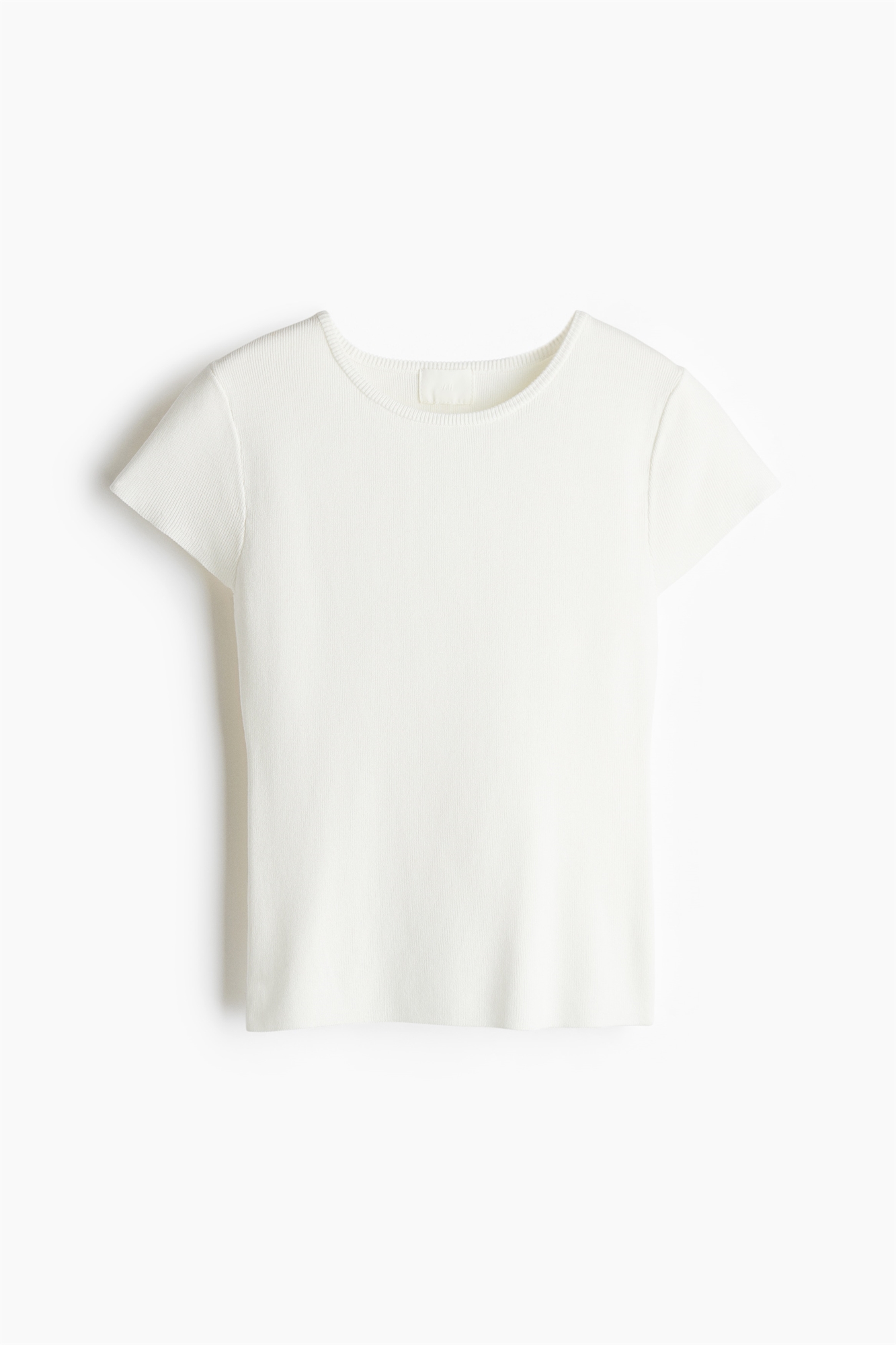 Короткая приталенная футболка из мягкого тонкого трикотажа с круглым вырезом с ребристой отделкой.