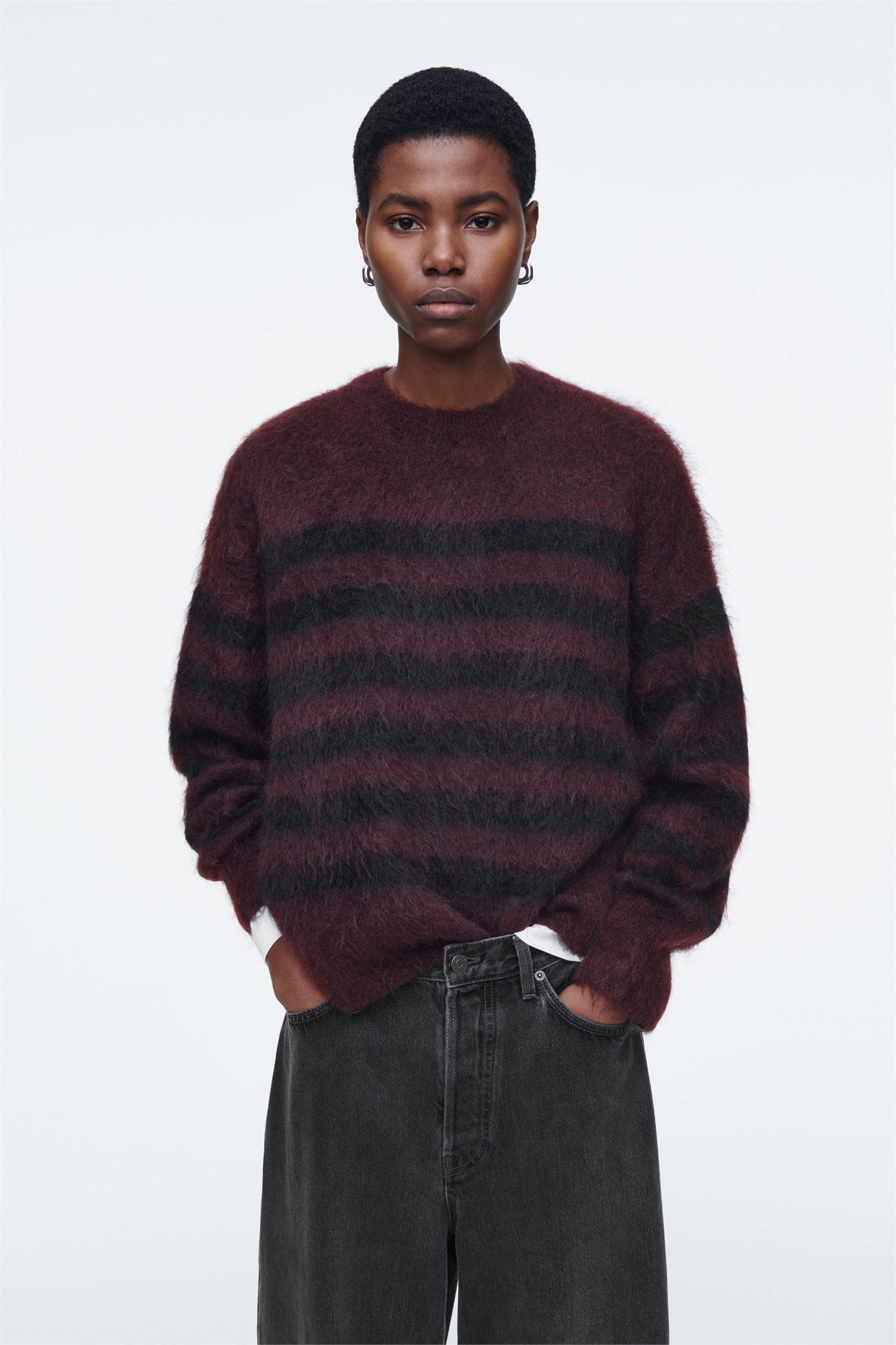 В сезоне осень-зима 2024 классический джемпер с вырезом горловины преображается благодаря динамичным узорам и богатым текстурам. Этот полосатый джемпер связан из мохера и мериносовой шерсти RMS с начесом, что придает ему мягкость и приятность на ощупь. Модель имеет непринужденный крой, который мягко облегает тело, а также спущенные плечи и закругленные рукава. Расслабленный крой Этот продукт имеет сертификат Responsible Mohair Standard (RMS) от Control Union 893290 и содержит мохеровое волокно с ферм, сертифицированных на соответствие требованиям по благополучию животных и управлению земельными ресурсами Состав: 33% мохер RMS, 32% переработанный полиэстер, 32% мериносовая шерсть, 3% полиамид (нейлон). Без учета отделки / Машинная стирка Длина по спинке для размера S составляет 61 см / Модель носит размер S