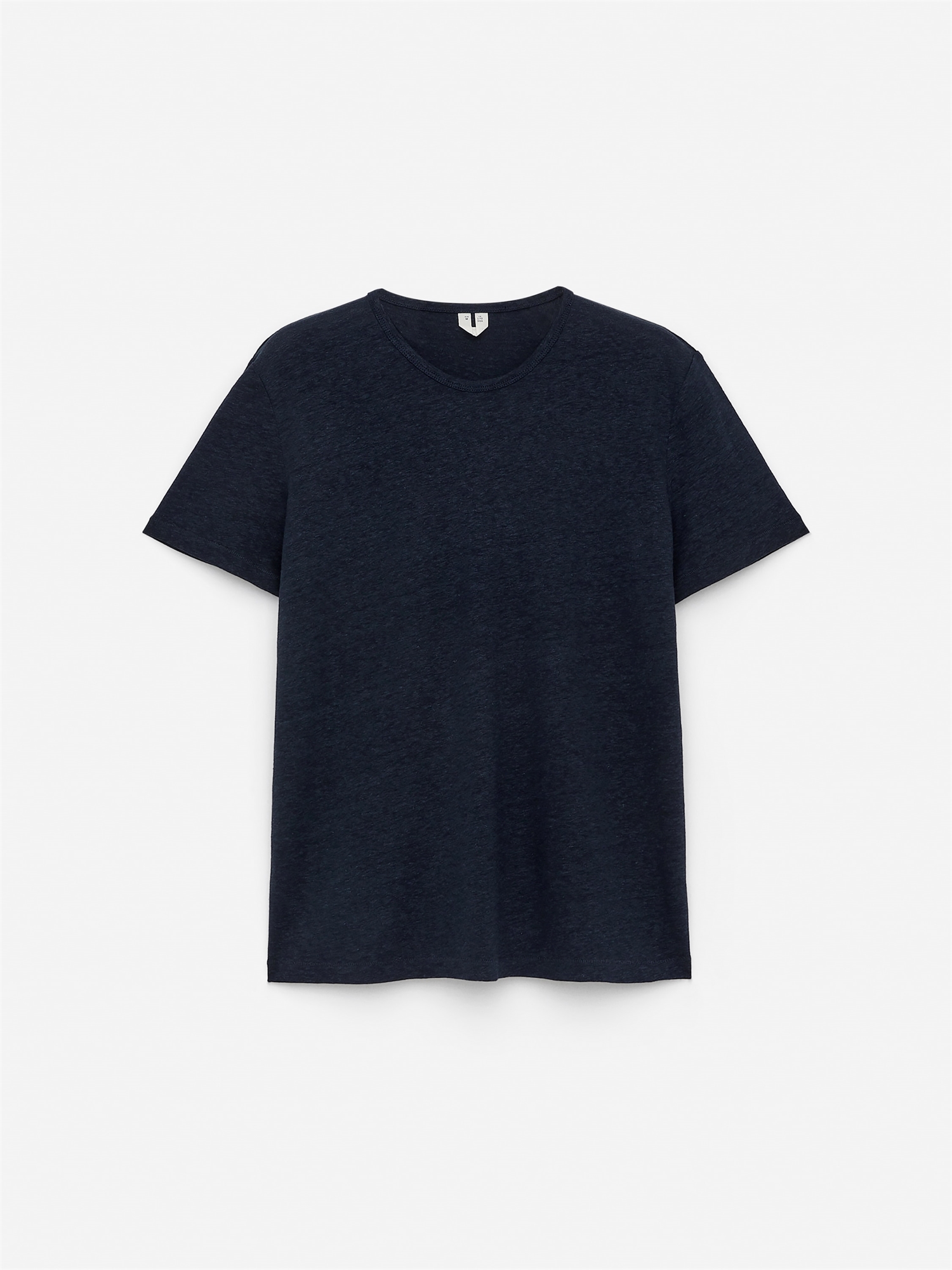 Футболка из мягкой льняной ткани. Модель с вырезом для экипажа и короткими рукавами. Обычный крой.