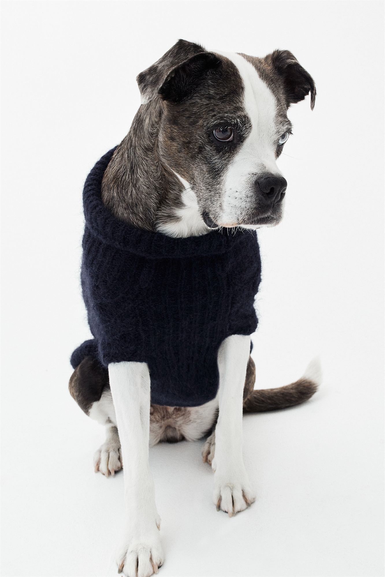 Джемпер для собак из мягкого кабельного трикотажа с горловиной поло и отверстиями для передних лап.