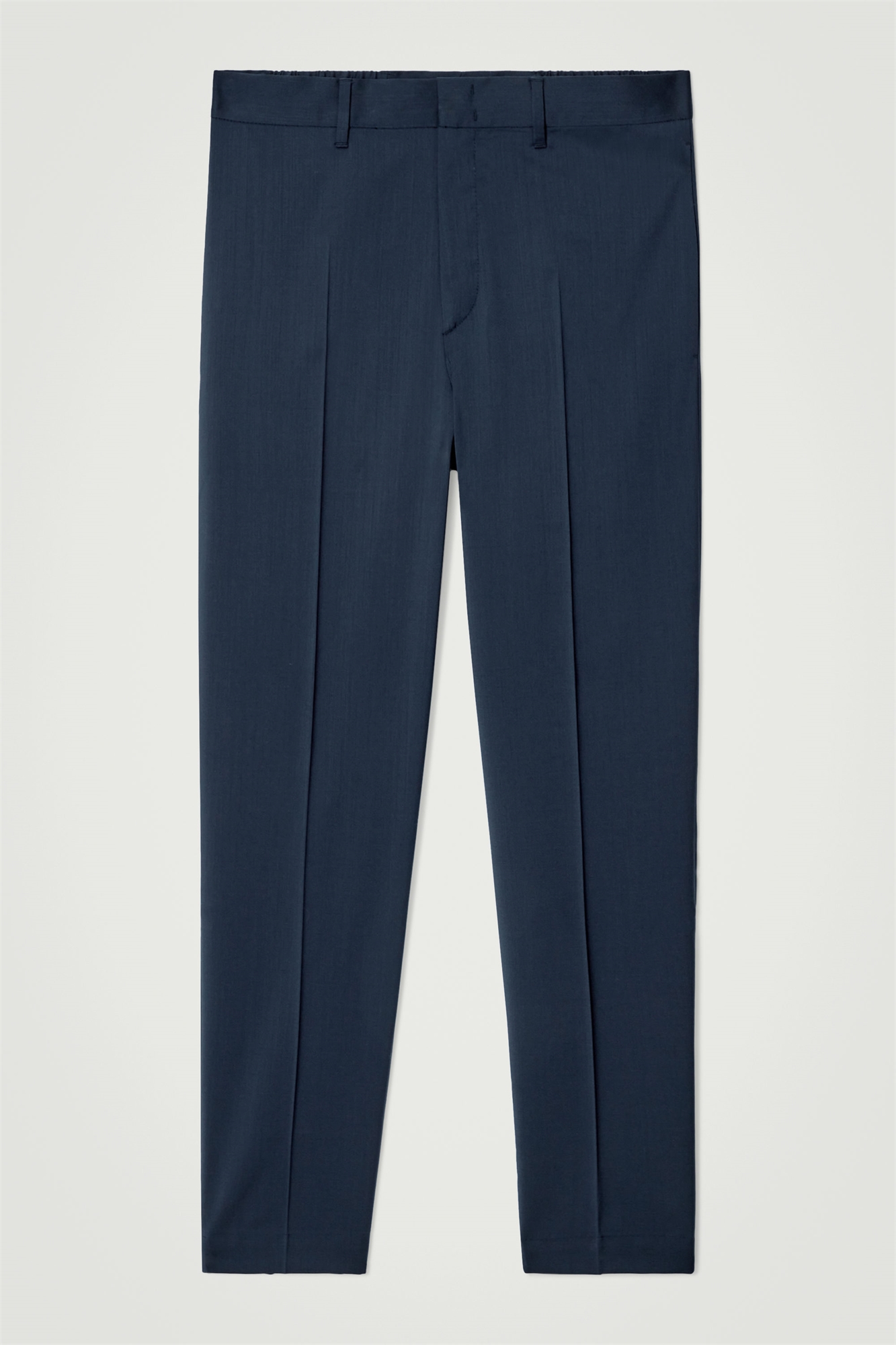 Эффектный костюм - основа мужской коллекции COS. Эти брюки из шерстяного твила NATIVA™ с эластичным поясом, петлями для ремня и заутюженными складками сшиты по фигуре с прямыми ногами. Наши стилисты предлагают сочетать их с классической белой рубашкой. Регулярный крой Застежка на крючок и молнию Шерсть NATIVA™ добывается с использованием регенеративных методов, которые соответствуют стандартам благополучия животных, требованиям землепользования и стандарту ответственной шерсти, поддерживая местные сообщества и способствуя улучшению здоровья почвы с течением времени Шелл: 100% шерсть NATIVA™. Подкладка карманов: 100% хлопок. Без учета отделки / Сухая чистка Внутренняя длина ноги размера EU 48 составляет 77,5 см / Модель носит размер EU 48