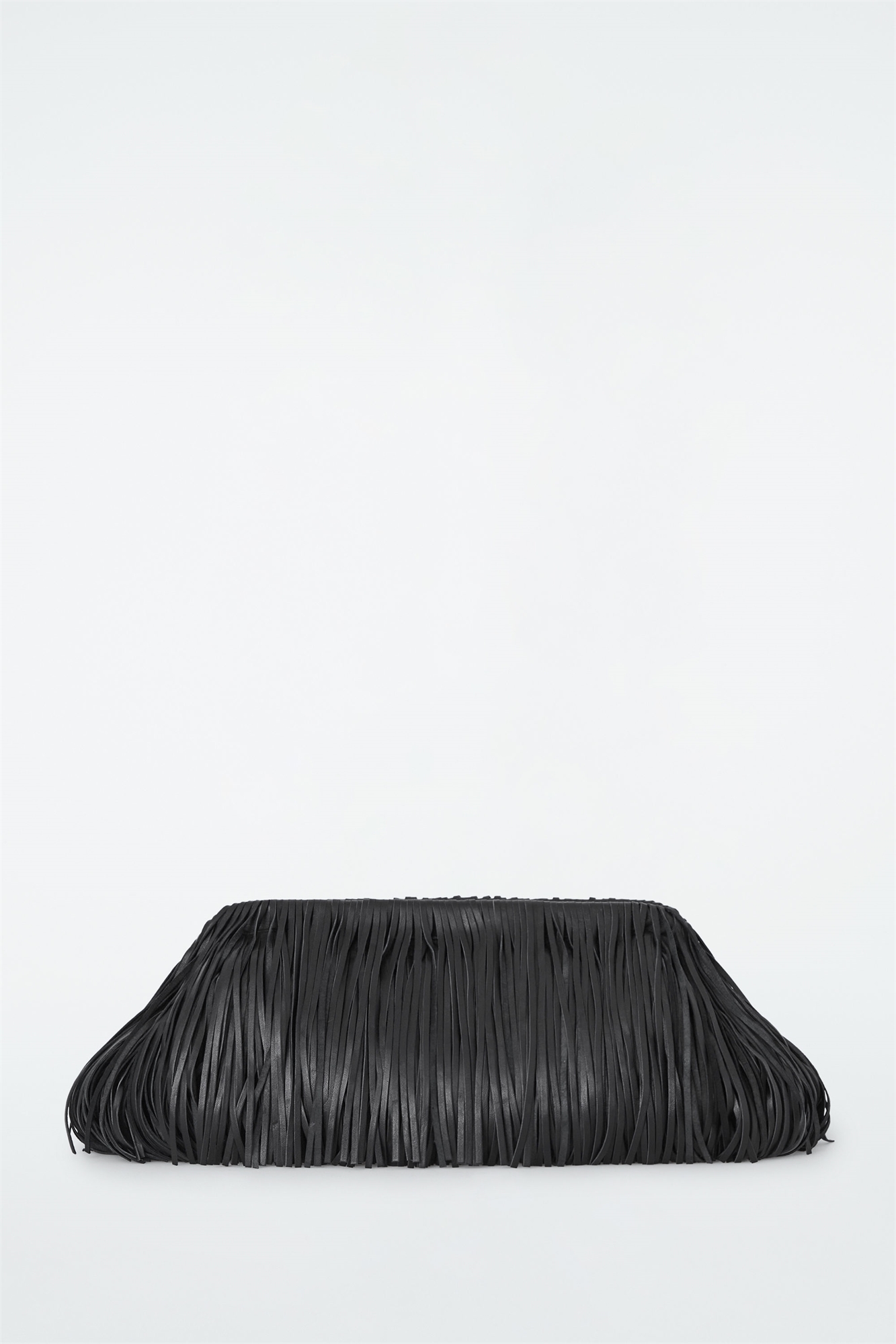 Преувеличенные формы и динамичные текстуры - главные тренды в коллекции аксессуаров этого сезона. Этот современный клатч изготовлен из первоклассной мягкой кожи и украшен рядами тональных кисточек. У него структурированный каркас, магнитная застежка и внутренний карман на молнии для мелочей. Магнитная застежка COS поддерживает ответственное производство через Leather Working Group. Подкладка: 100% переработанный хлопок. Без учета отделки Высота: 24 см, Ширина: 38 см, Глубина: 10 см
