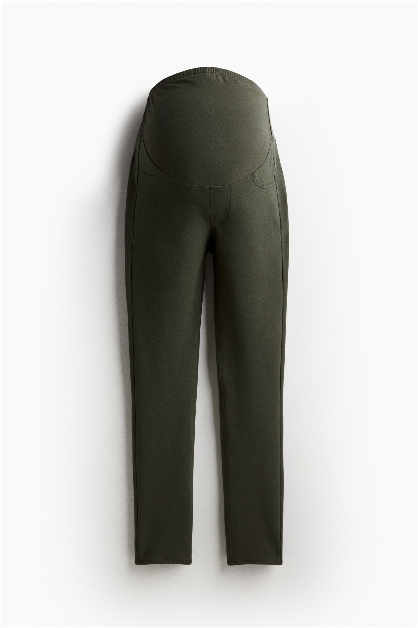 Джеггинсы из мягкого джерси с широкой панелью на талии для лучшей посадки на животе. Фальшивая ширинка, фальшивые передние карманы и настоящие задние карманы.