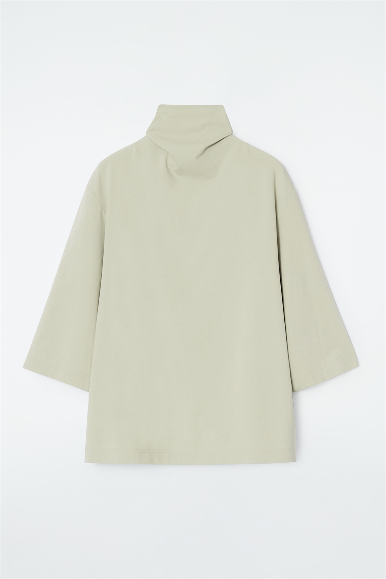 Этот современный топ зеленого цвета имеет приталенный силуэт и рукава длиной три четверти. Он изготовлен из мягкого хлопкового трикотажа и имеет высокий воротник с завязками, которые завязываются на шее и придают элегантный вид минималистичному дизайну. Regular fit Внешняя ткань: 91 % хлопка, 9 % эластана. Детали исключены/Машинная стирка Длина по спинке в размере S = 65,5 см/Модель носит размер S