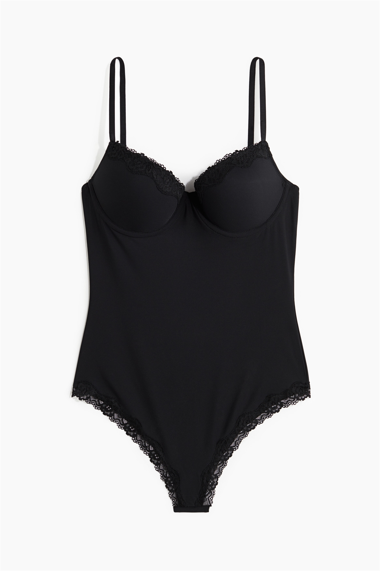 Боди-стринги пуш-ап из микрофибры с легким формирующим эффектом на талии. Регулируемые бретели и мягкие чашечки деми-стиля для более низкого выреза, который обеспечивает меньший охват, больший объем бюста и более полное декольте. Узкая застежка на крючки и глазки сзади, ластовица на подкладке со скрытыми кнопками и кружевная отделка в верхней части чашечек и вокруг проймы.