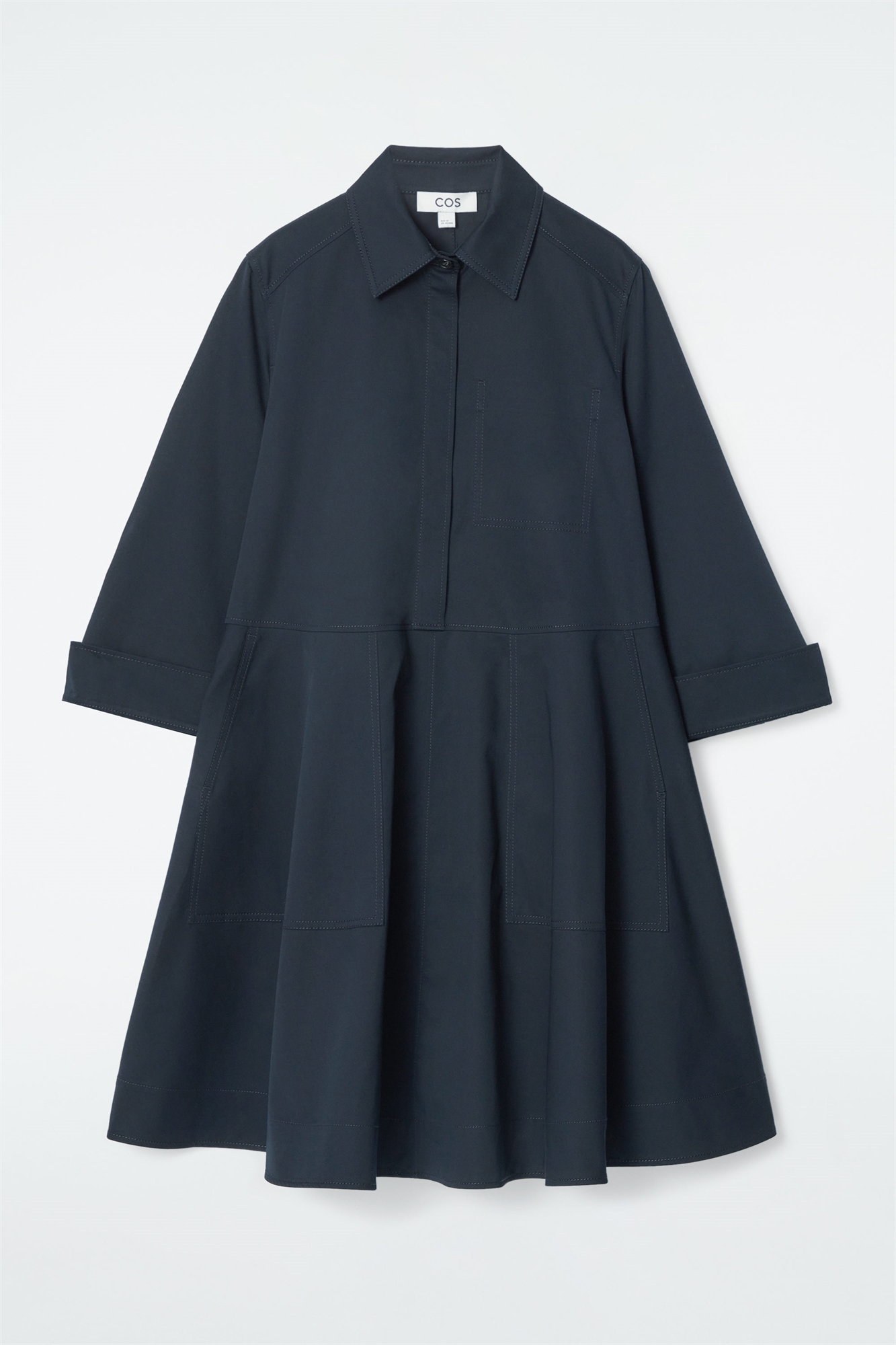 Созданное по образцу классического тренча, это мини-платье А-линии с тонким намеком на практичность. Оно сшито из хлопка с добавлением стрейча и имеет большие передние карманы, скрытую застежку и расклешенную юбку. Свободный крой Застежка на пуговицы Материал: 98% хлопок, 2% эластан. Подкладка: 100% хлопок. Без учета отделки / Машинная стирка Длина по спинке для размера EU 36 составляет 92 см / Модель носит размер EU 36