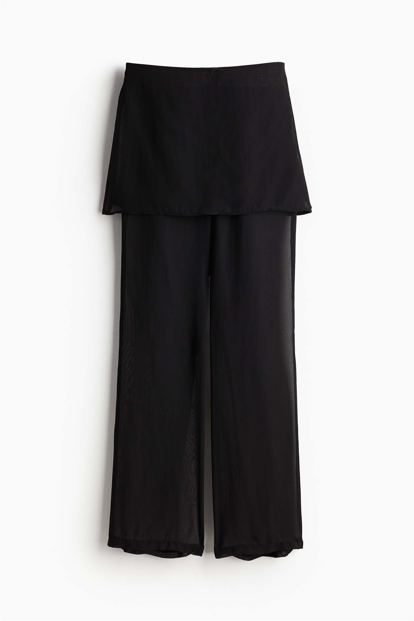 Свободные брюки из воздушного шифона с вшитой мини-юбкой для многослойного образа. Скрытая застежка-молния сзади и широкие ноги.