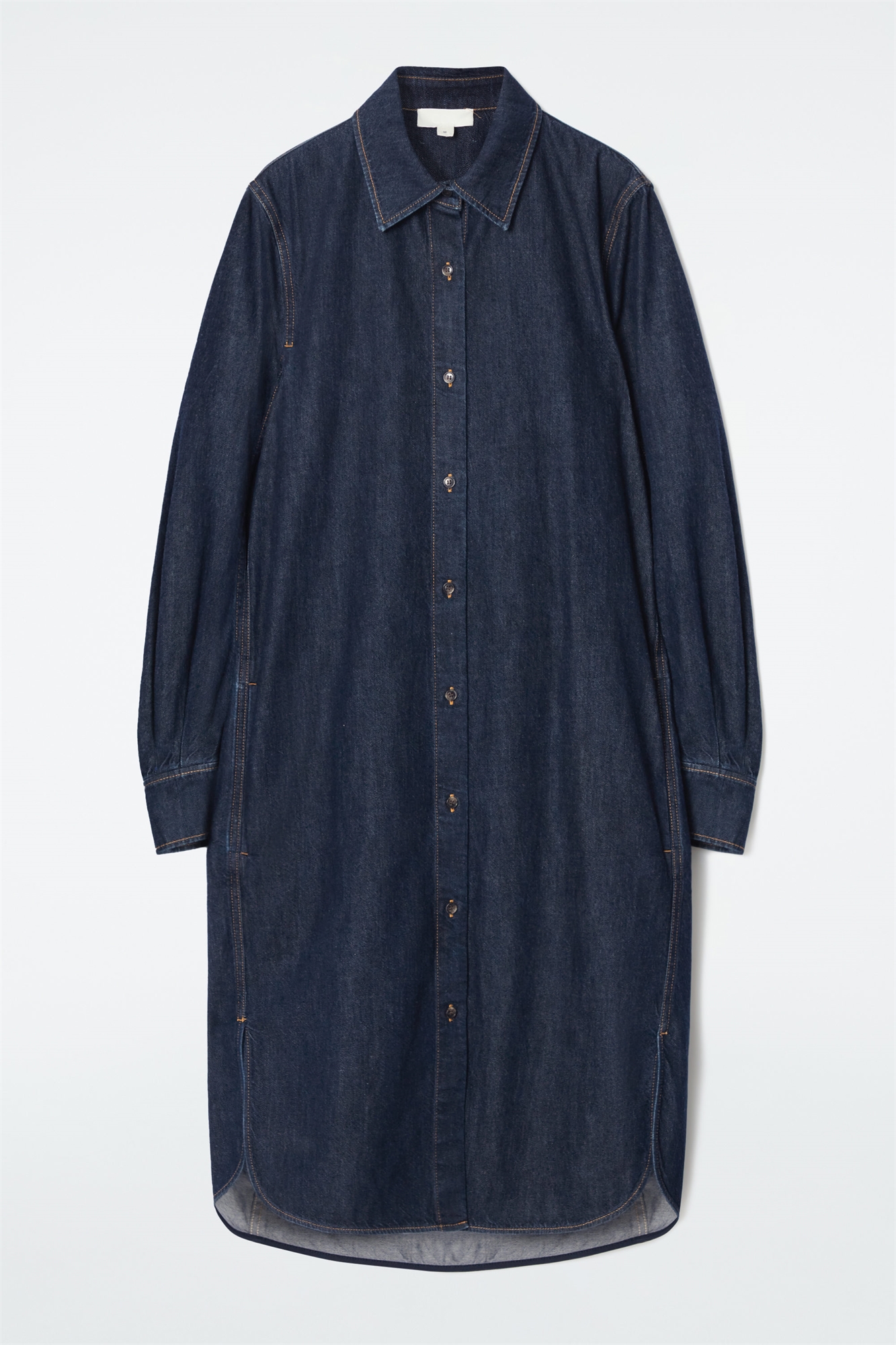 Это выстиранное платье-рубашка цвета темного индиго вдохновлено классическими американскими моделями в стиле вестерн. Изготовленное из чистого хлопкового денима, оно имеет заостренный воротник, застежку на пуговицах и закругленный подол, отделанный табачно-коричневой строчкой. Карманы скрыты в боковых швах. Регулярный крой Застежка на пуговицы Внешняя ткань: 100 % хлопок. Подкладка: 65% переработанного полиэстера, 35% хлопка. Детали не учитываются/Машинная стирка Длина по спинке в размере ЕС 36 = 109 см/Модель носит размер ЕС 36