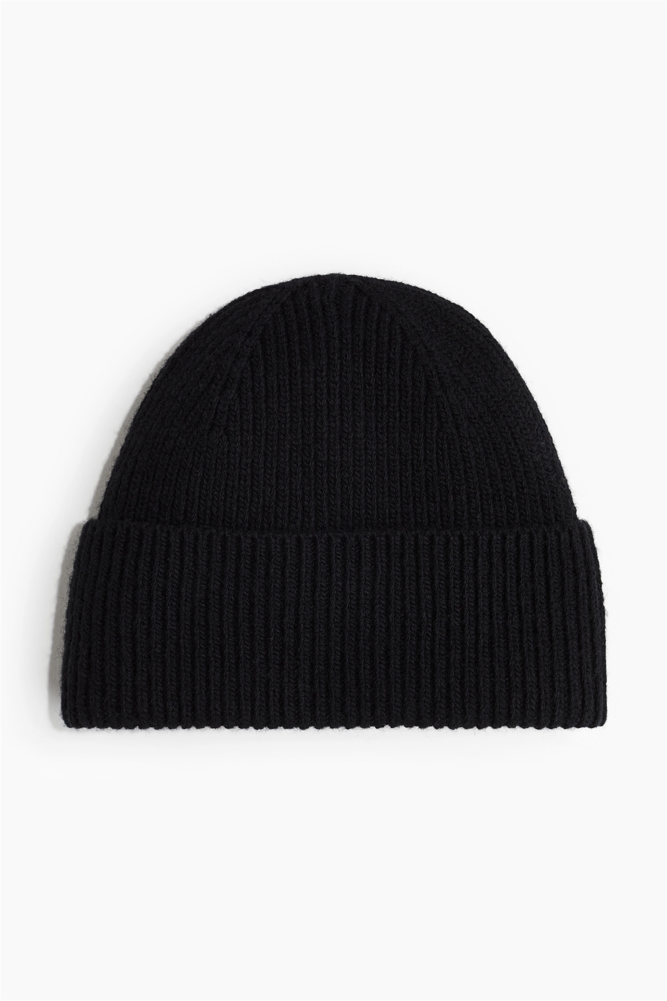 Шапка из шерстяного трикотажа с широкими оборочками на подоле.