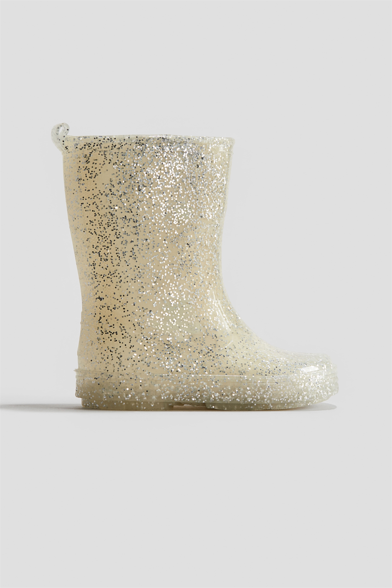 Блестящие веллингтоны для непромокаемых игр на улице с петлей сзади, чтобы их было легче надевать и снимать, и подошвой с рисунком внизу для надежного сцепления. На подкладке. Высота подошвы 2,6 см.