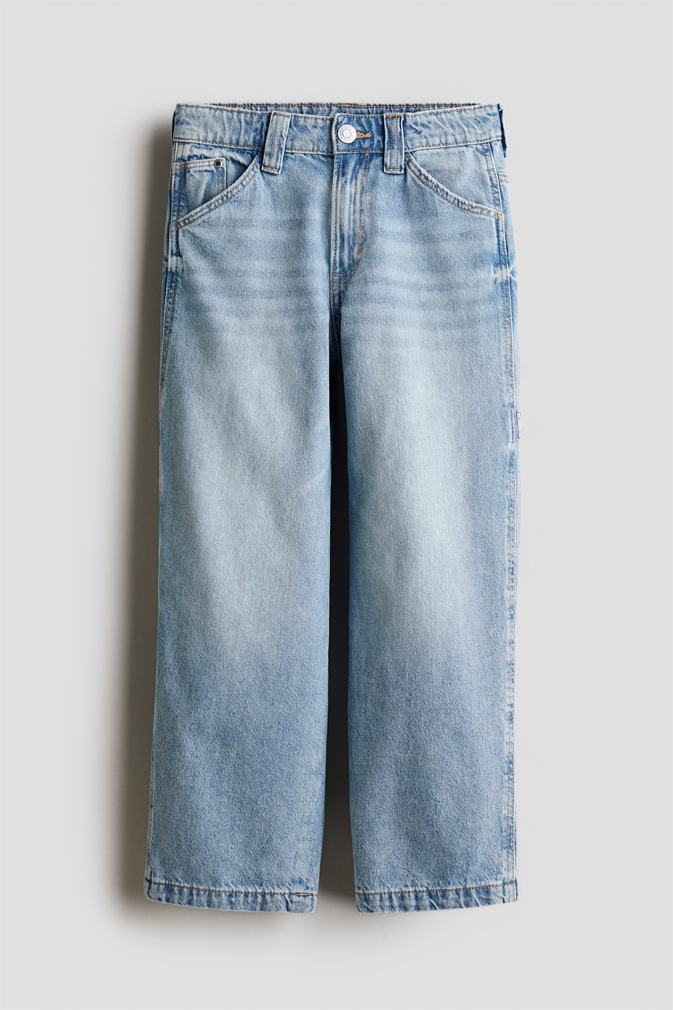 Мешковатые джинсы с 5 карманами из хлопкового денима с регулируемой эластичной талией, ширинкой на молнии с пуговицей и широкими штанинами с петлей для молотка и карманом на ноге.