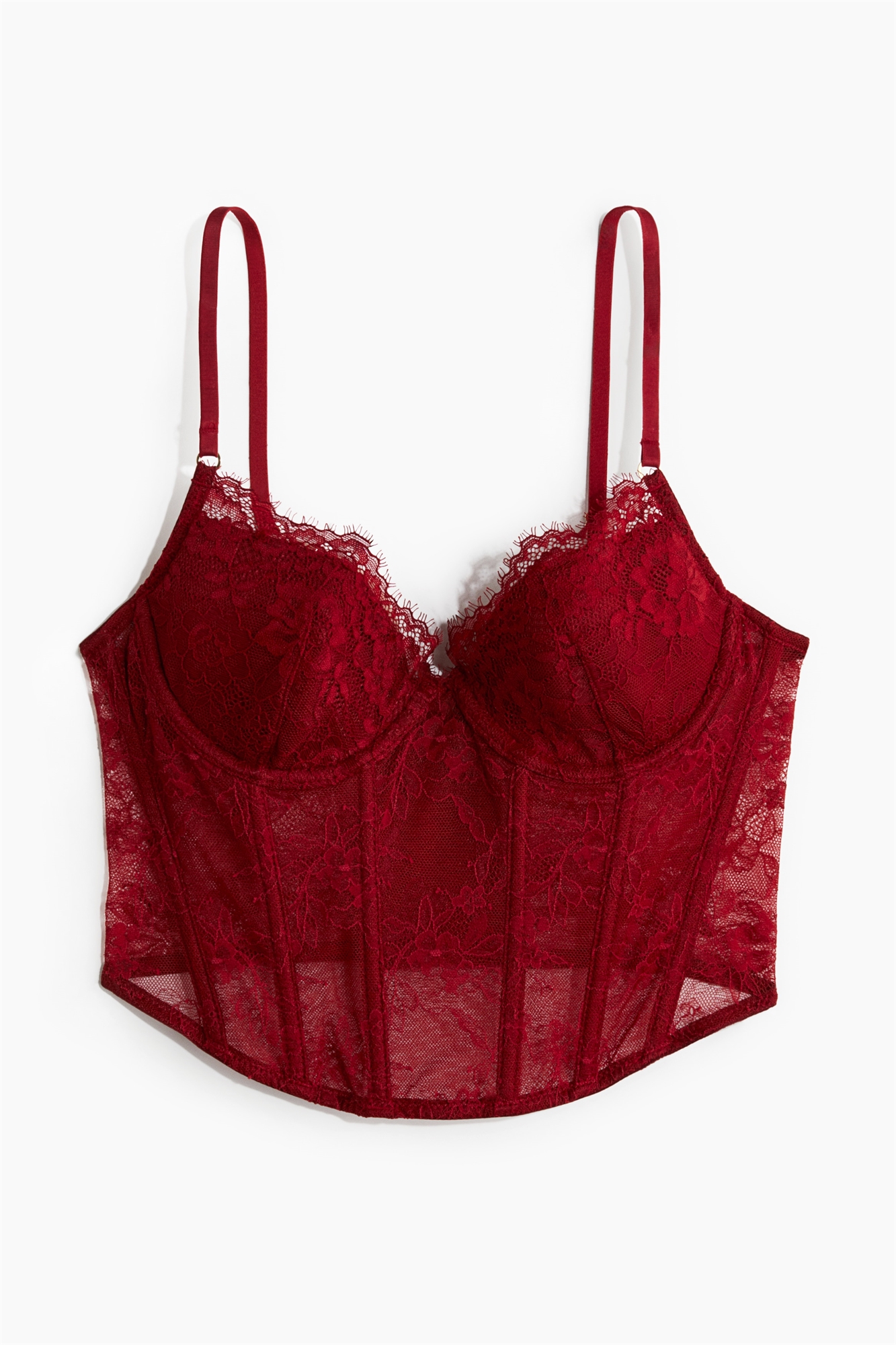 Бюстье из кружева с мягкими чашечками на завязках, придающими форму бюсту и обеспечивающими хорошую поддержку. Регулируемые бретели и косточки спереди и по бокам придают форму и поддерживают. Широкая застежка на крючки и глазки сзади. Спереди на подкладке.