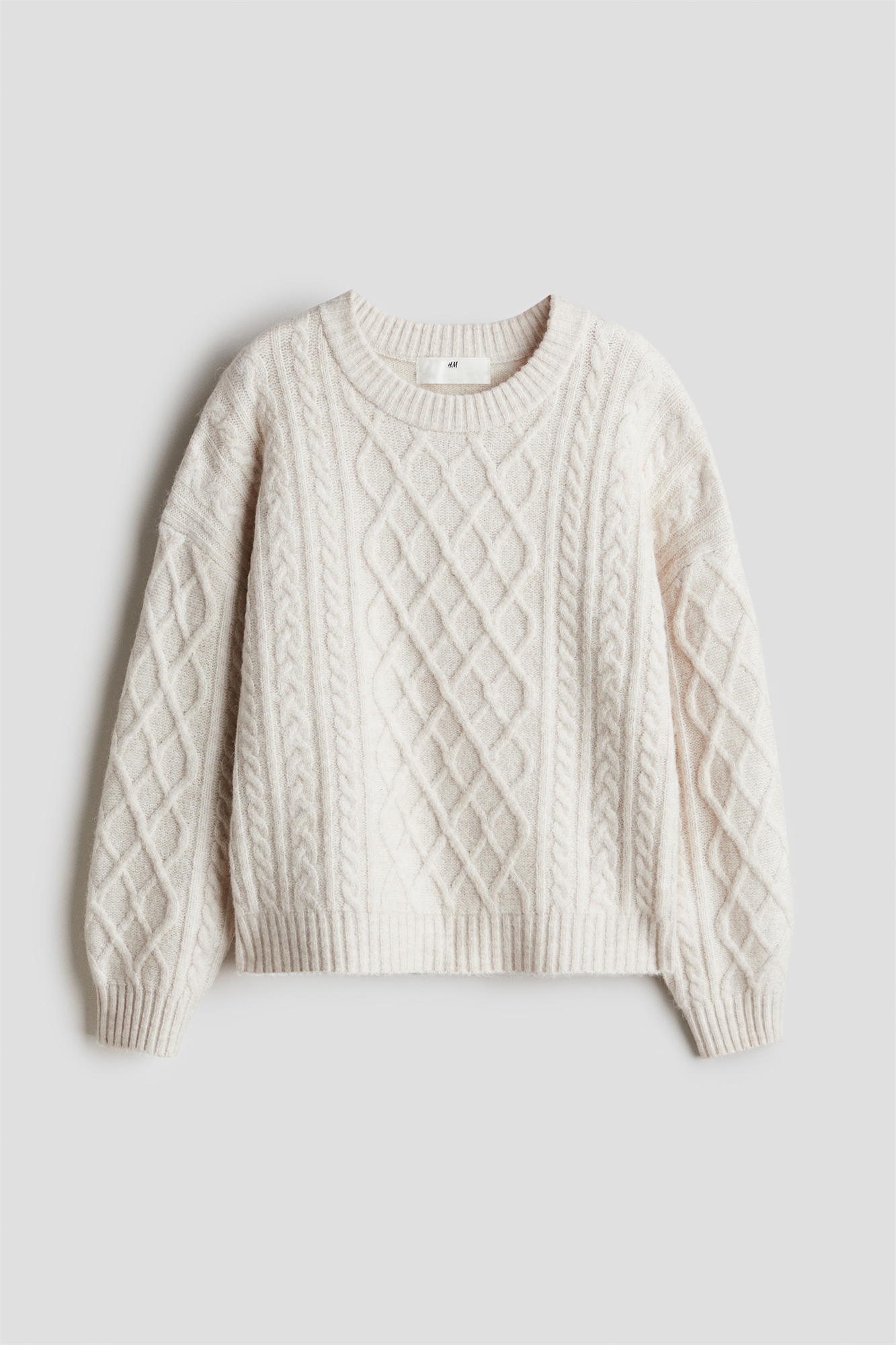 Джемпер из мягкого трикотажа в рубчик с круглым вырезом в рубчик, спущенными плечами и длинными рукавами. Ребристые манжеты и подол.