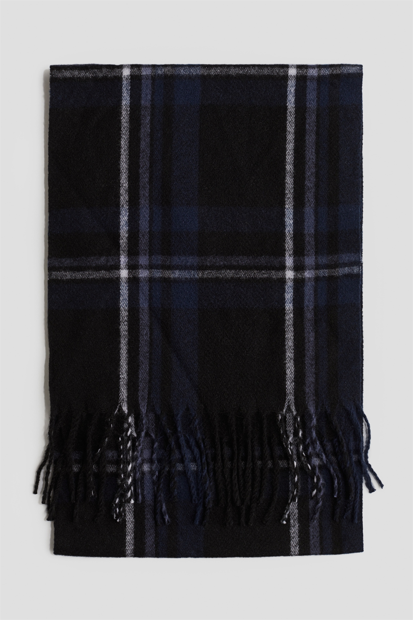 Шарф из тканого материала с бахромой по коротким сторонам.
