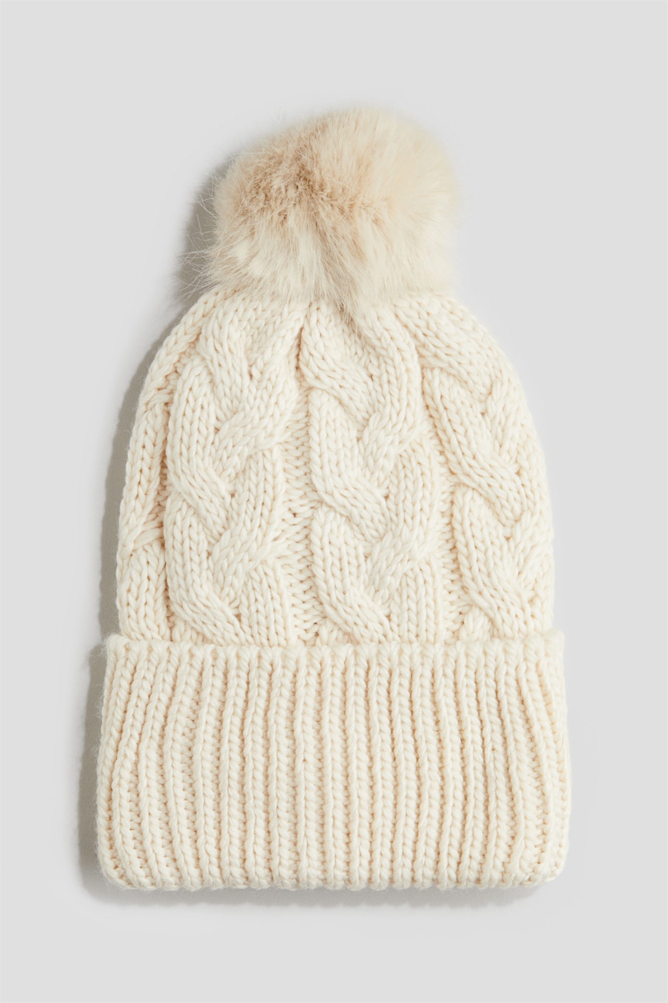 Бини из мягкого трикотажа с помпоном и ребристым подолом.