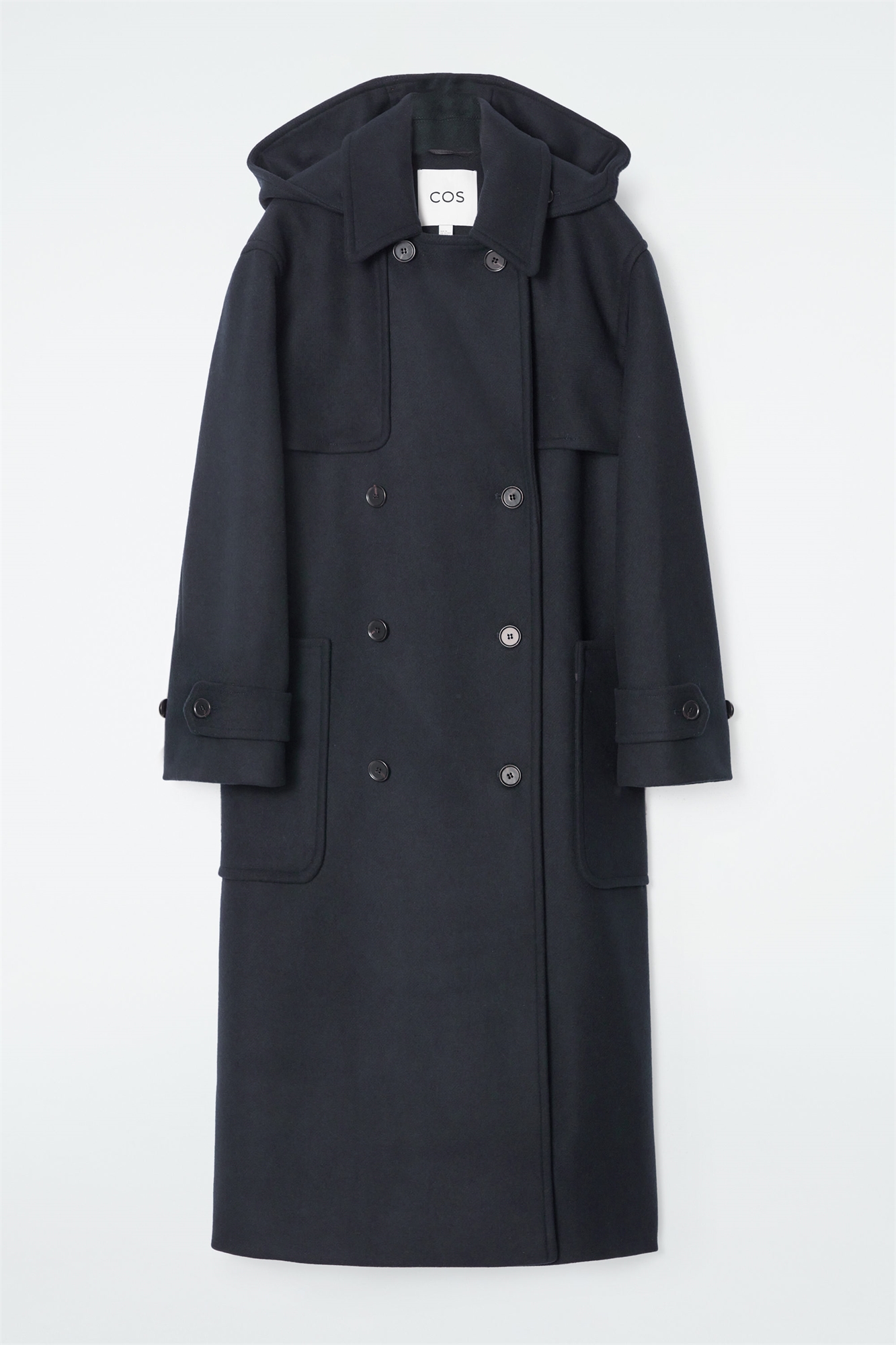 Это пальто-дубленка от COS впечатляет своим изысканным видом. Нестареющая модель темно-синего цвета имеет заостренный воротник, двубортную складку и штормовую застежку по образцу классического тренча. Ткань изготовлена из смеси переработанной шерсти, которая, вместе с капюшоном и регулируемыми манжетами, обеспечит вам уют и тепло даже в прохладные дни. Свободный крой Планка на пуговицах Переработанная шерсть изготавливается из отходов прядильного производства, остатков пряжи, отходов производства и одежды после потребления - так мы создаем новые фасоны без лишних затрат материала Внешняя ткань: 72 % переработанной шерсти, 28 % полиамида. Подкладка: 100% вискоза. Детали исключены/Сухая чистка Длина по спинке в размере ЕС 36 = 122,6 см/Модель носит размер ЕС 36