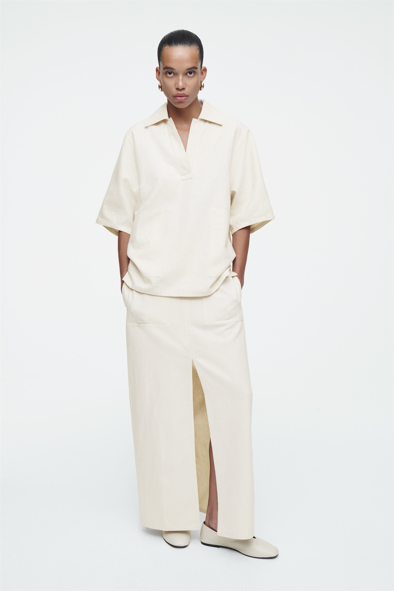 Эта юбка-макси с колоннами - минимальный вариант утилитарного стиля. Выполненная в универсальном экрю оттенке, она имеет накладные карманы больших размеров и сшита из льняной и хлопковой саржи, которая достаточно легка для теплой погоды. Подойдите к нему в комплекте с соответствующим топом. Зауженный крой Застежка-молния Спереди разрез Оболочка: 53% льна, 47% хлопка. Без учета отделки / Машинная стирка Длина по спинке для размера EU 36 составляет 97,5 см / Модель носит размер EU 36