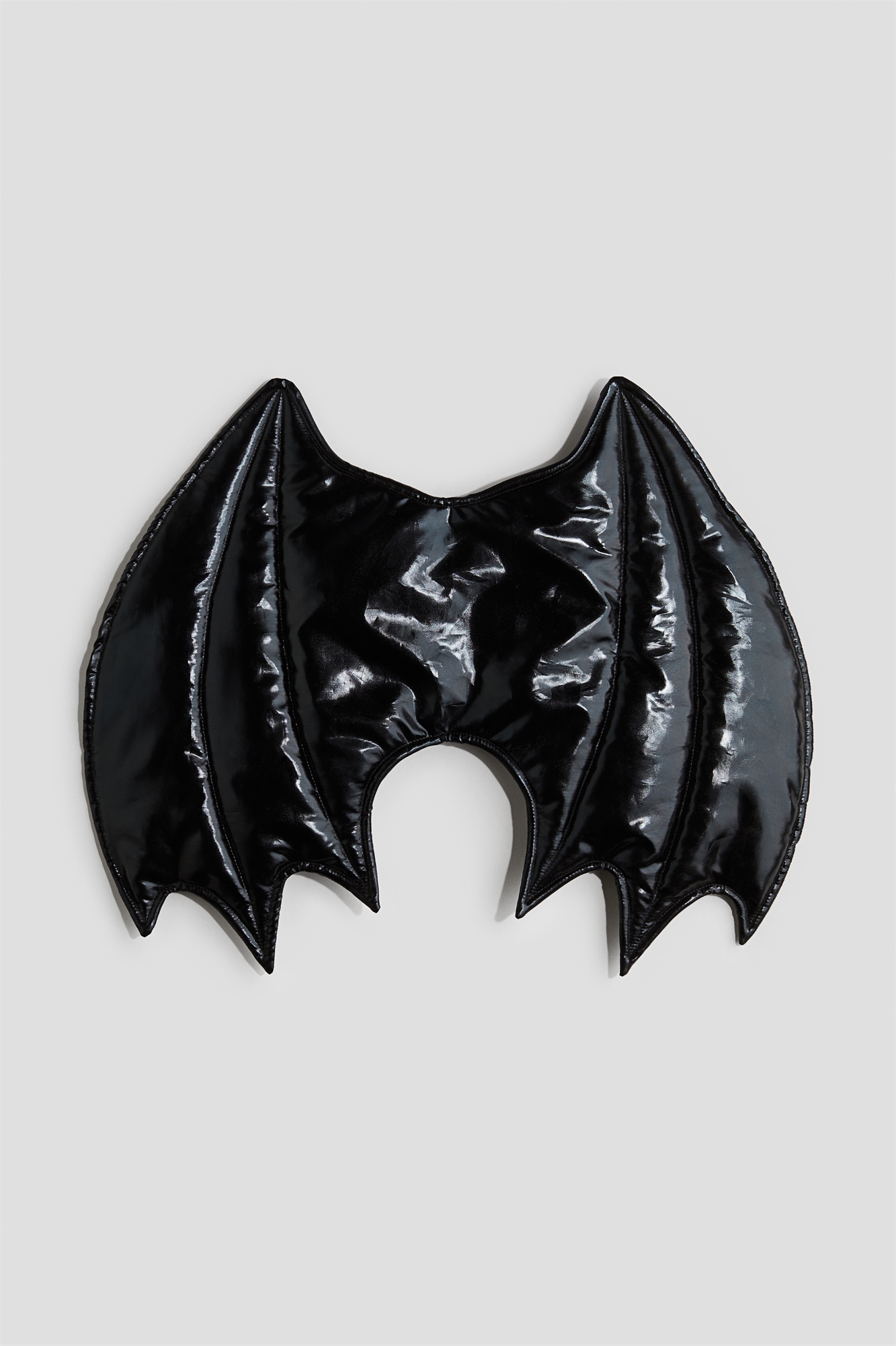 Крылья летучей мыши для маскарадного костюма из стеганой ткани с покрытием. Блестящие, регулируемые эластичные плечевые ремни. Высота 40 см. Ширина в самом широком месте 51 см.
