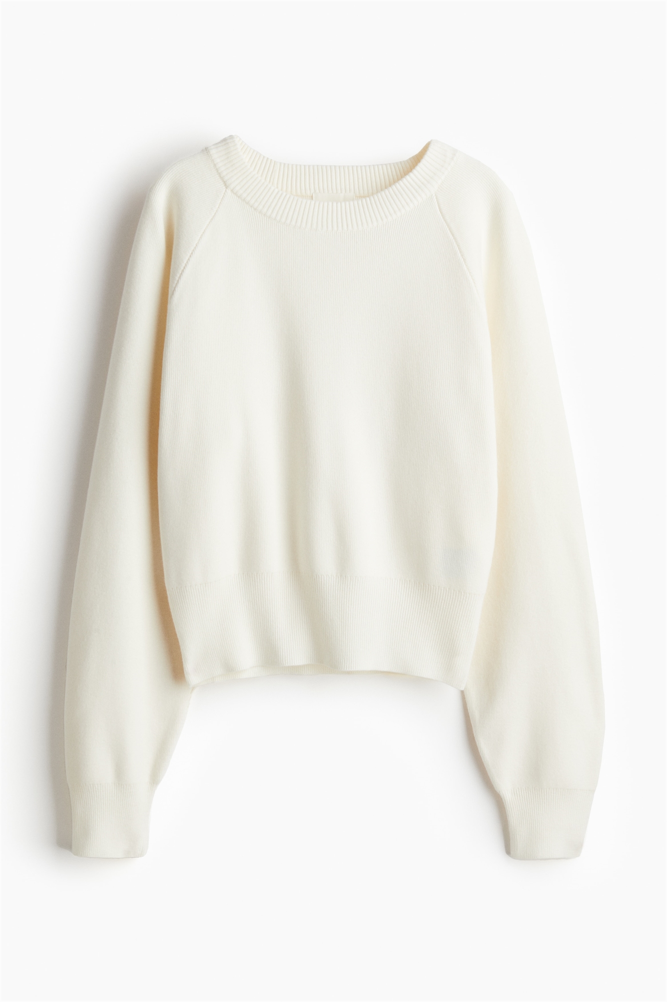 Короткий джемпер из мягкого трикотажа с длинными рукавами реглан и окантовкой по вырезу горловины, манжетам и подолу.