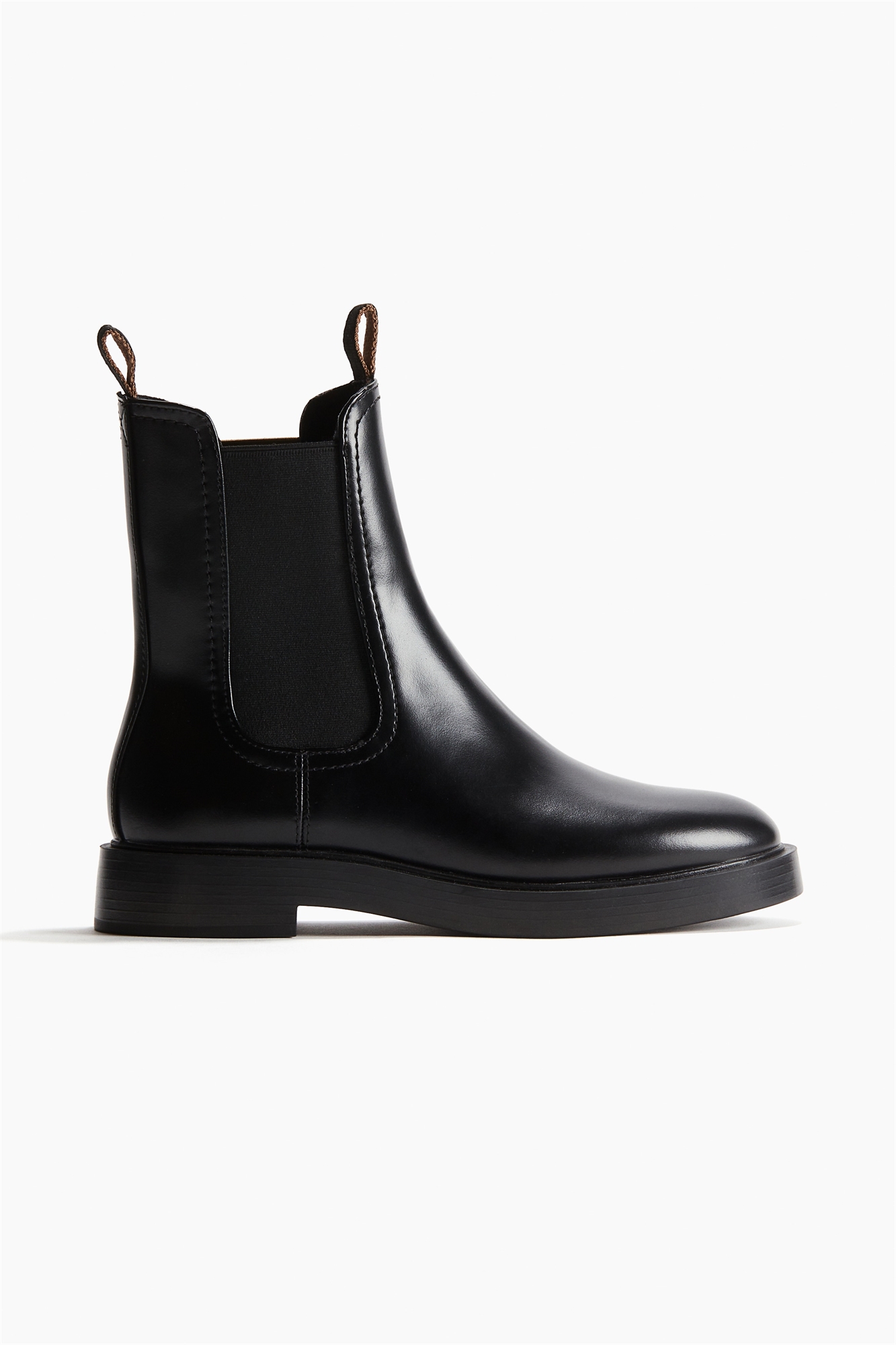 Сапоги-челси из ткани с покрытием, с эластичными прорезями по бокам и петлей спереди и сзади. Подкладка из джерси.