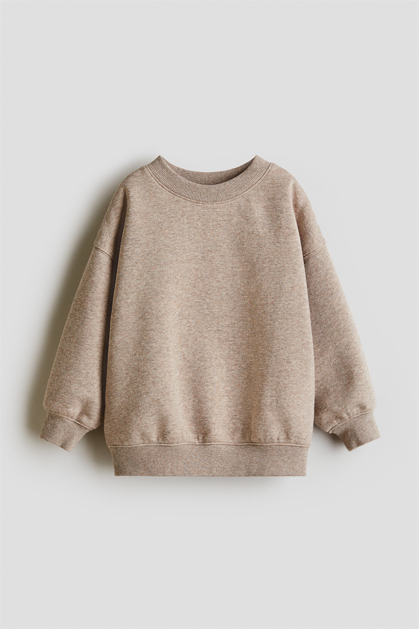 Топ оверсайз из толстовки с мягким начесом внутри. Круглый вырез с ребристой отделкой, спущенные плечи и длинные рукава. Ребристые манжеты и подол.
