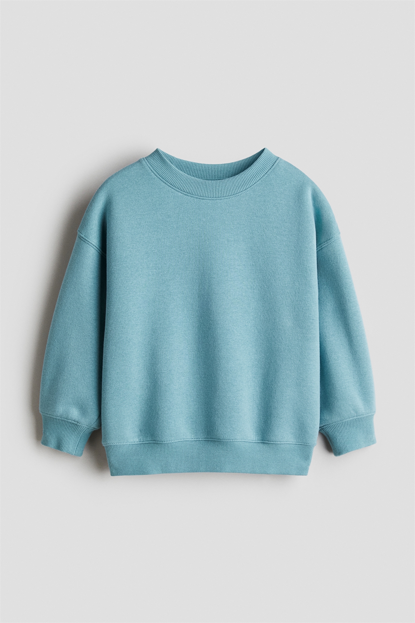 Топ оверсайз из толстовки с мягким начесом внутри. Круглый вырез с ребристой отделкой, спущенные плечи и длинные рукава. Ребристые манжеты и подол.