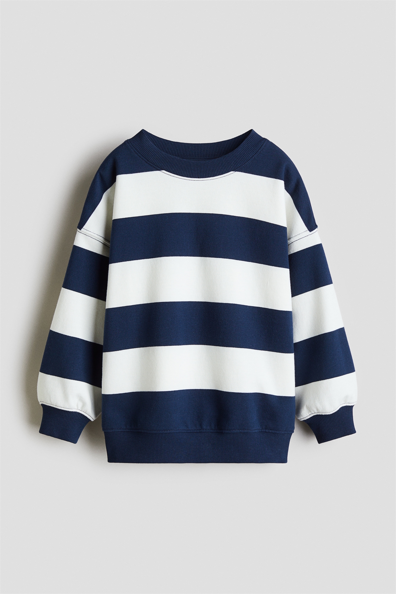 Топ оверсайз из толстовки с мягким начесом внутри. Круглый вырез с ребристой отделкой, спущенные плечи и длинные рукава. Ребристые манжеты и подол.