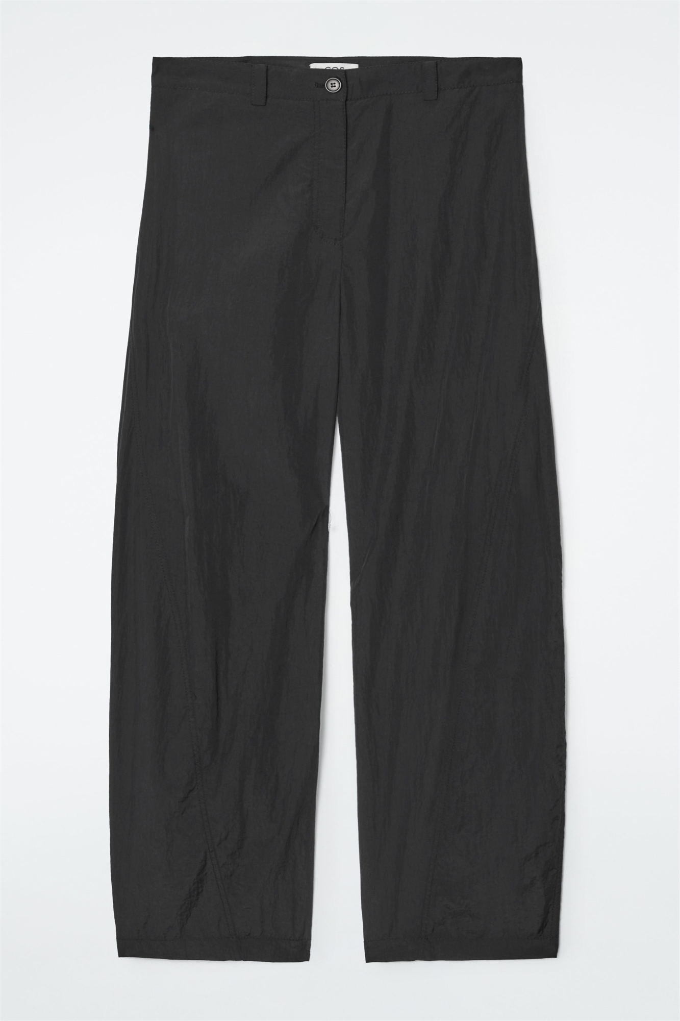 В этом сезоне наша команда женской одежды переосмыслила любимые модели COS, добавив преувеличенные пропорции и деконструированные детали. Эти брюки изготовлены из переработанного нейлона и имеют характерный закругленный широкий крой с косыми швами. Регулярный крой Застежка на молнию и пуговицу Боковые прорезные карманы, накладной карман сзади Используя переработанный нейлон, мы снижаем потребность в ограниченных природных ресурсах и уменьшаем выбросы парниковых газов Внешняя ткань: 100% переработанный полиамид (переработанный нейлон). Подкладка: 100% хлопок. Детали исключены/Машинная стирка Внутренняя длина ноги в размере 36 = 74,9 см/Модель носит размер 36