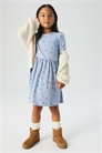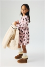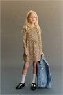 Платье с длинными рукавами из принтованного хлопкового джерси, со сборкой на талии и расклешенной юбкой.