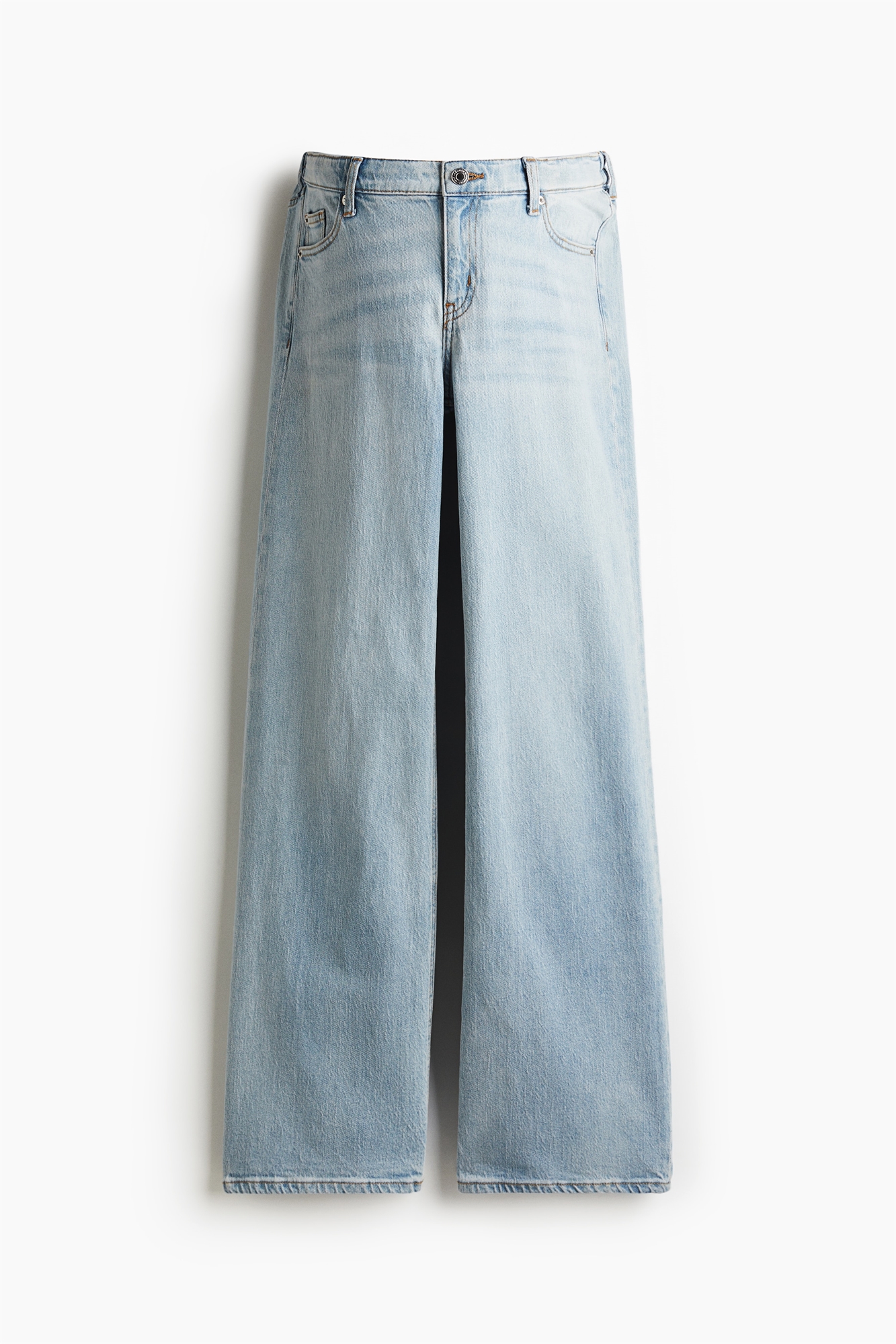 Джинсы с 5 карманами из хлопкового денима с легким стретчем для комфорта. Свободный крой с заниженной талией, ширинка на молнии и пуговице, закрытая резинка по бокам и широкие штанины. Скрытая регулируемая резинка в поясе позволяет регулировать ширину талии, что позволяет носить джинсы как во время беременности, так и после нее.