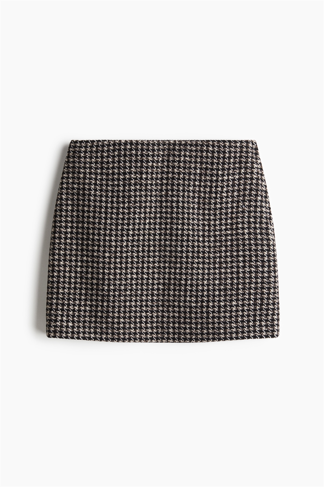Короткая приталенная юбка из тканого материала слегка А-образной формы. Высокая талия со скрытой эластичной резинкой и потайной застежкой на молнию и пуговицу. На подкладке.