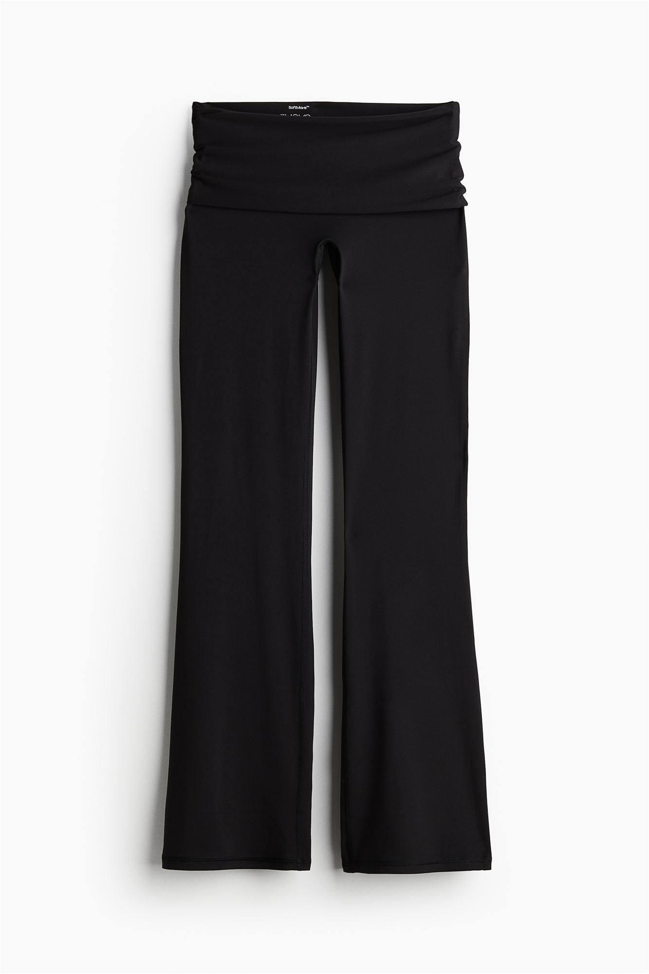 Расклешенные леггинсы для йоги из функциональной ткани SoftMove™, которая обеспечивает максимальную мягкость и комфорт, а также поддержку контуров, и DryMove™, которая помогает отводить влагу от кожи. Высокая талия с откидной панелью на талии.