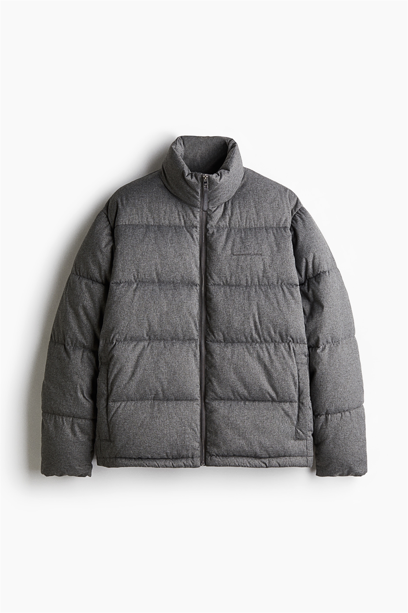 Куртка с мягкой подкладкой из стеганой, водоотталкивающей и ветрозащитной ткани с вышитым текстовым мотивом на груди. Воротник-стойка, застежка-молния спереди, прорезные боковые карманы с кнопкой и внутренний карман на молнии. Скрытая эластичная резинка на манжетах и эластичный шнурок с ограничителями на подоле. Свободный крой для пышного, но не слишком большого силуэта. На подкладке.