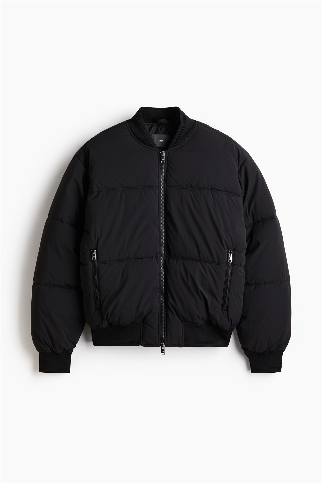 Куртка-бомбер с мягкой подкладкой из эластичного нейлона с небольшим ребристым воротником и двусторонней молнией спереди. Слегка спущенные плечи, боковые карманы на молнии, внутренний карман и эластичная тесьма на манжетах и подоле. Свободный крой для пышного, но не чрезмерно большого силуэта. На подкладке.
