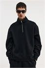 Топ из плотного материала из хлопка с мягким начесом внутри. Воротник-стойка, застежка-молния, передняя часть, спущенные плечи, длинные рукава, манжеты и подол в рубчик. Свободный крой для пышного, но не чрезмерно большого силуэта.