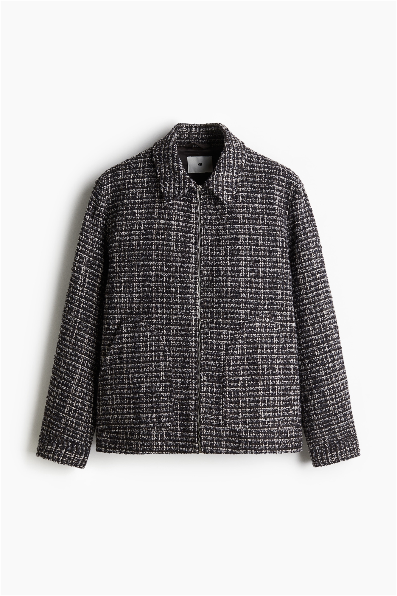 Рубашка из твида с отложным воротником, застежкой на молнию спереди и длинными рукавами с манжетами на пуговицах. Вертикальный шов по спинке, накладные передние карманы и внутренний карман. Подол прямого кроя. Регулярный крой для комфортной носки и классического силуэта. На подкладке.