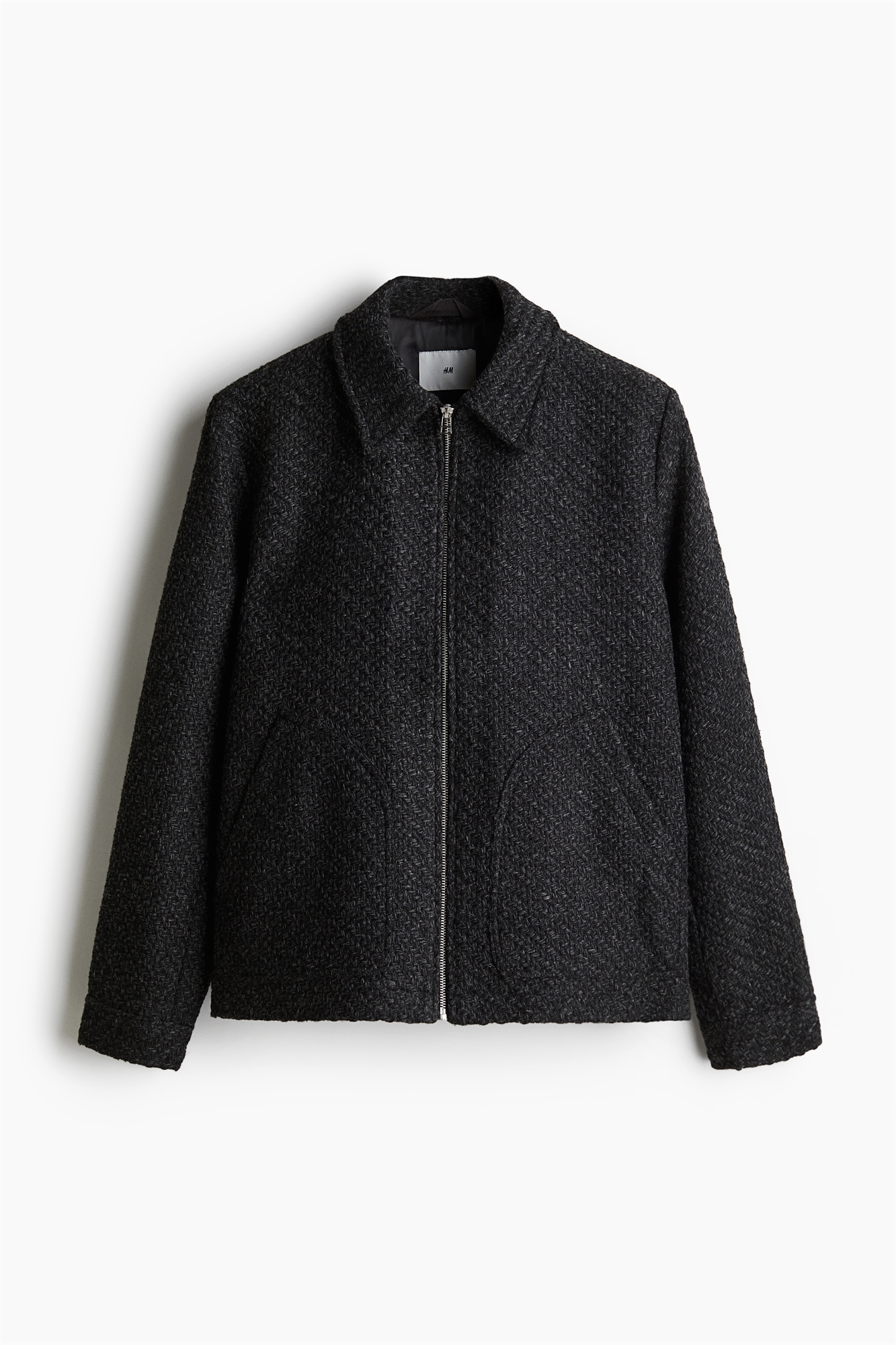 Рубашка из твида с отложным воротником, застежкой на молнию спереди и длинными рукавами с манжетами на пуговицах. Вертикальный шов по спинке, накладные передние карманы и внутренний карман. Подол прямого кроя. Регулярный крой для комфортной носки и классического силуэта. На подкладке.