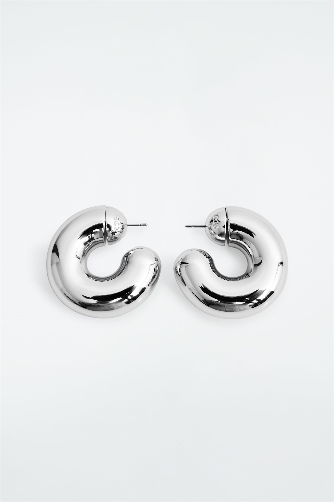 Эти крупные яркие серьги - современная альтернатива классическим серьгам-обручам. Изготовленные из посеребренной переработанной латуни, они имеют округлую форму и полые внутри, что делает их достаточно легкими для ношения в течение всего дня. Застежка-колокольчик Подходит для проколотых ушей Латунь - универсальный материал, который может быть переработан многократно без потери своих свойств Верхний материал: 100 % переработанная латунь. Покрытие: 100 % серебро. Детали, кроме высоты серег = 3,2 см