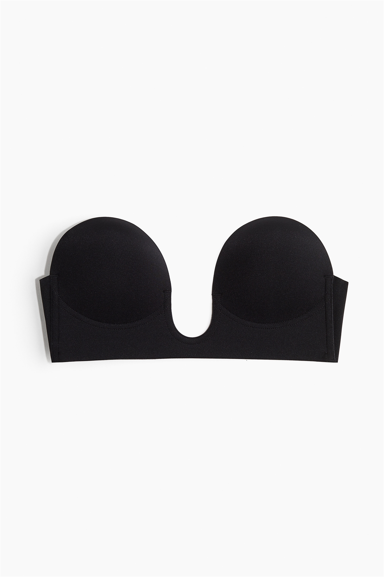 Бюстгальтер с самоклеящимися чашечками и боковинами и U-образной металлической проволокой по центру бюста. Без бретелей и спины, что делает его идеальным для ношения под одеждой без бретелей или спины. Можно стирать и использовать повторно.