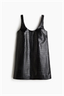 Свободное мини-платье без рукавов из ткани с крокодиловым узором. Вытачки на груди и вырез-лодочка спереди и сзади. На подкладке.
