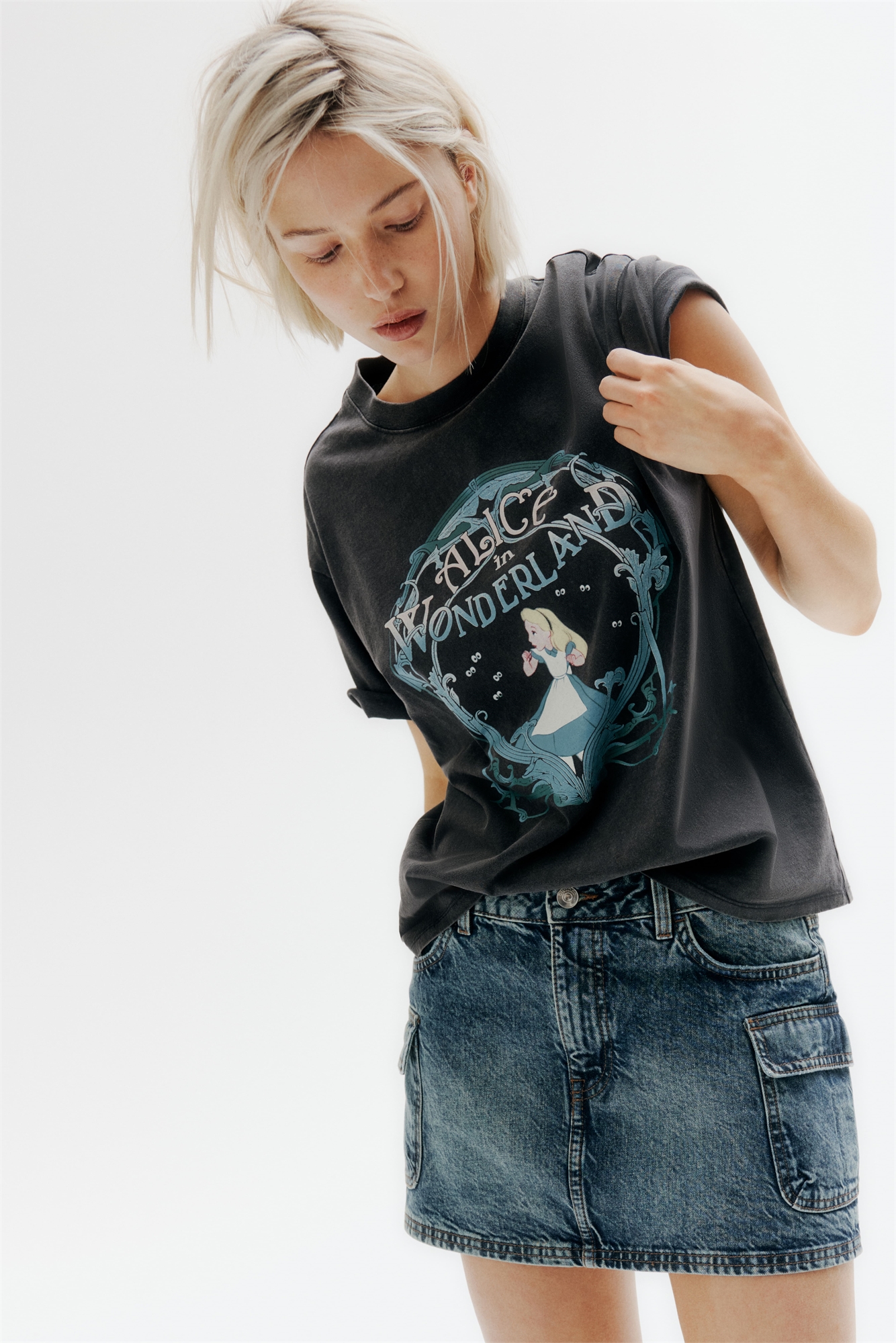 Облегающая мини-юбка из плотного хлопкового денима с ширинкой на молнии и пуговице, передними карманами и накладными карманами над подолом.