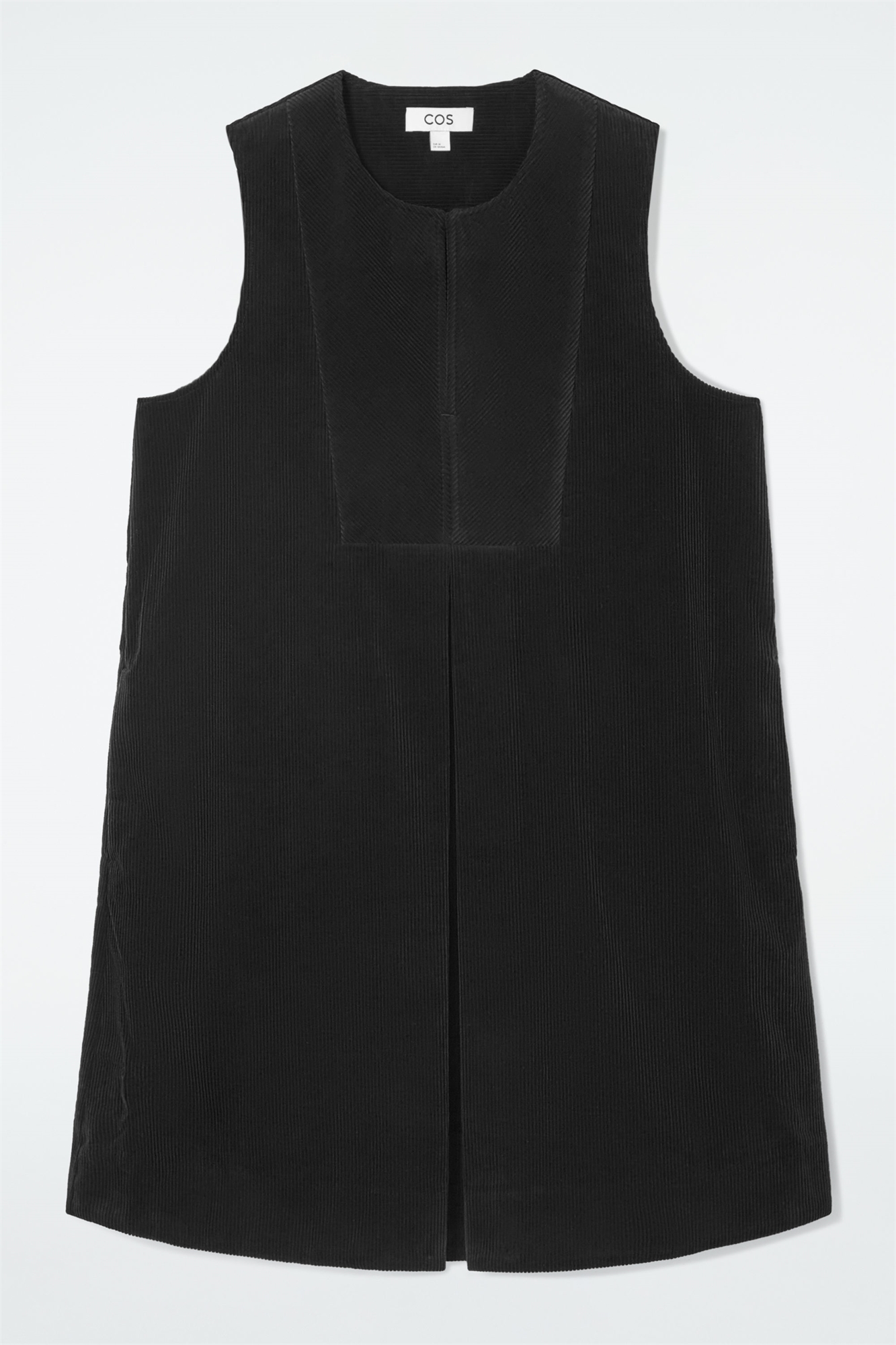 При создании этого мини-платья команда женской одежды COS обратилась к 70-м годам. Оно сшито из бархатистого хлопкового вельвета, который придает глубину черному оттенку, и имеет нагрудник спереди, складку-бокс и разрез на горловине. Регулярный крой Застежка на пуговицы Карманы в боковых швах Ткань: 100% хлопок. Без учета отделки / Машинная стирка Длина по спинке для размера EU 36 составляет 87 см / Модель носит размер EU 36