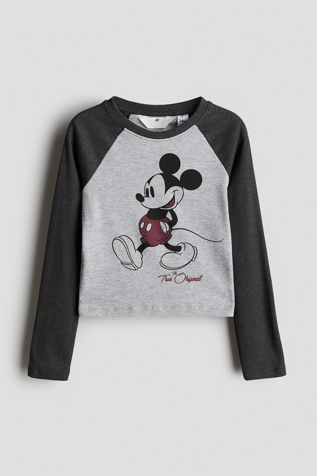 Короткий топ из мягкого, ребристого хлопкового джерси с принтом и длинными рукавами.