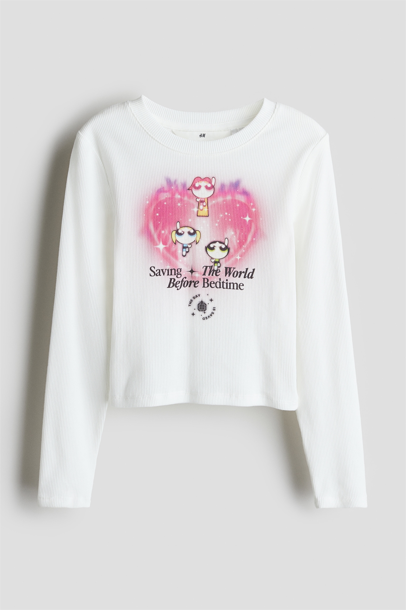 Короткий топ из мягкого, ребристого хлопкового джерси с принтом и длинными рукавами.